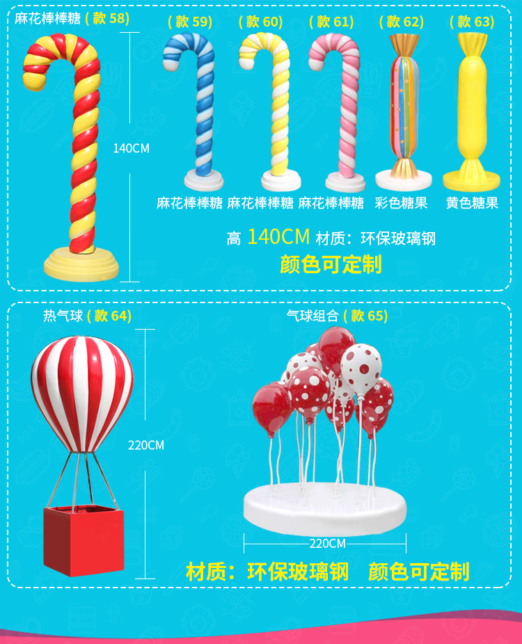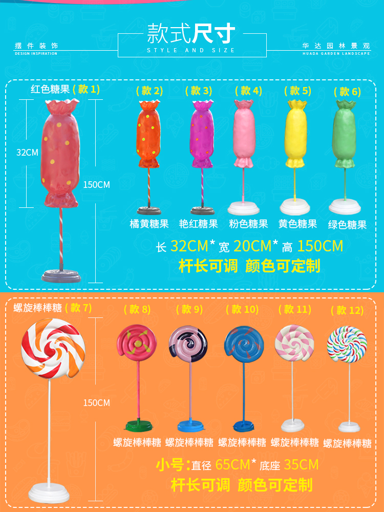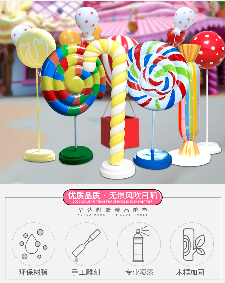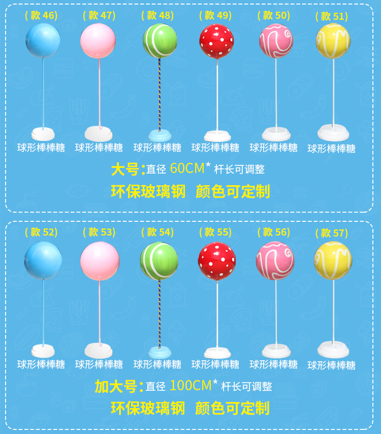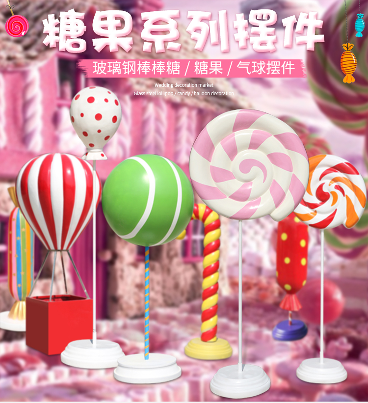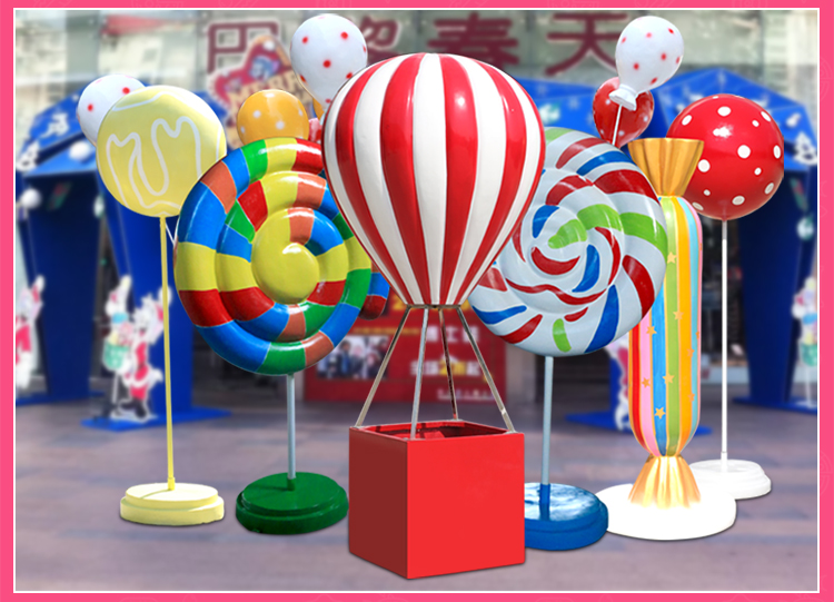 유리 섬유 강화 플라스틱 가짜 롤리팝 장식품 시뮬레이션 캔디 열기구 조각 야외 쇼핑몰 휴일 아름다움 첸 장식스토어 가기