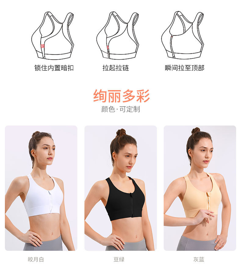 고강도 스포츠 속옷 여성용 원피스 가슴 패드 플러스 사이즈 충격 흡수 전면 지퍼 대형 가슴 러닝 브라 겉옷 조끼