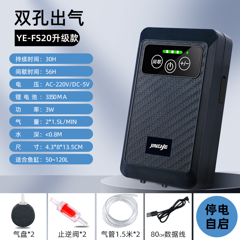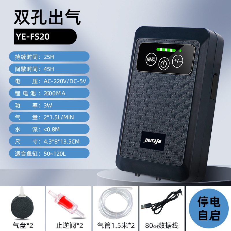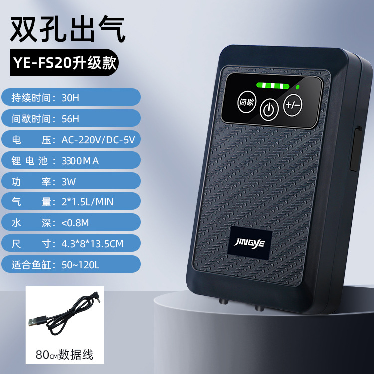 Jingye 수조 산소 펌프 충전식 통풍기 산소 펌프 리튬 배터리 가정용 야외 낚시 상자 물고기 워터 펌프스토어 가기