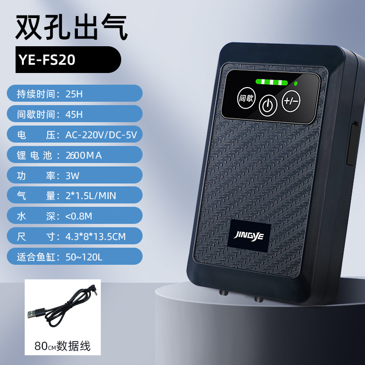 Jingye 수조 산소 펌프 충전식 통풍기 산소 펌프 리튬 배터리 가정용 야외 낚시 상자 물고기 워터 펌프