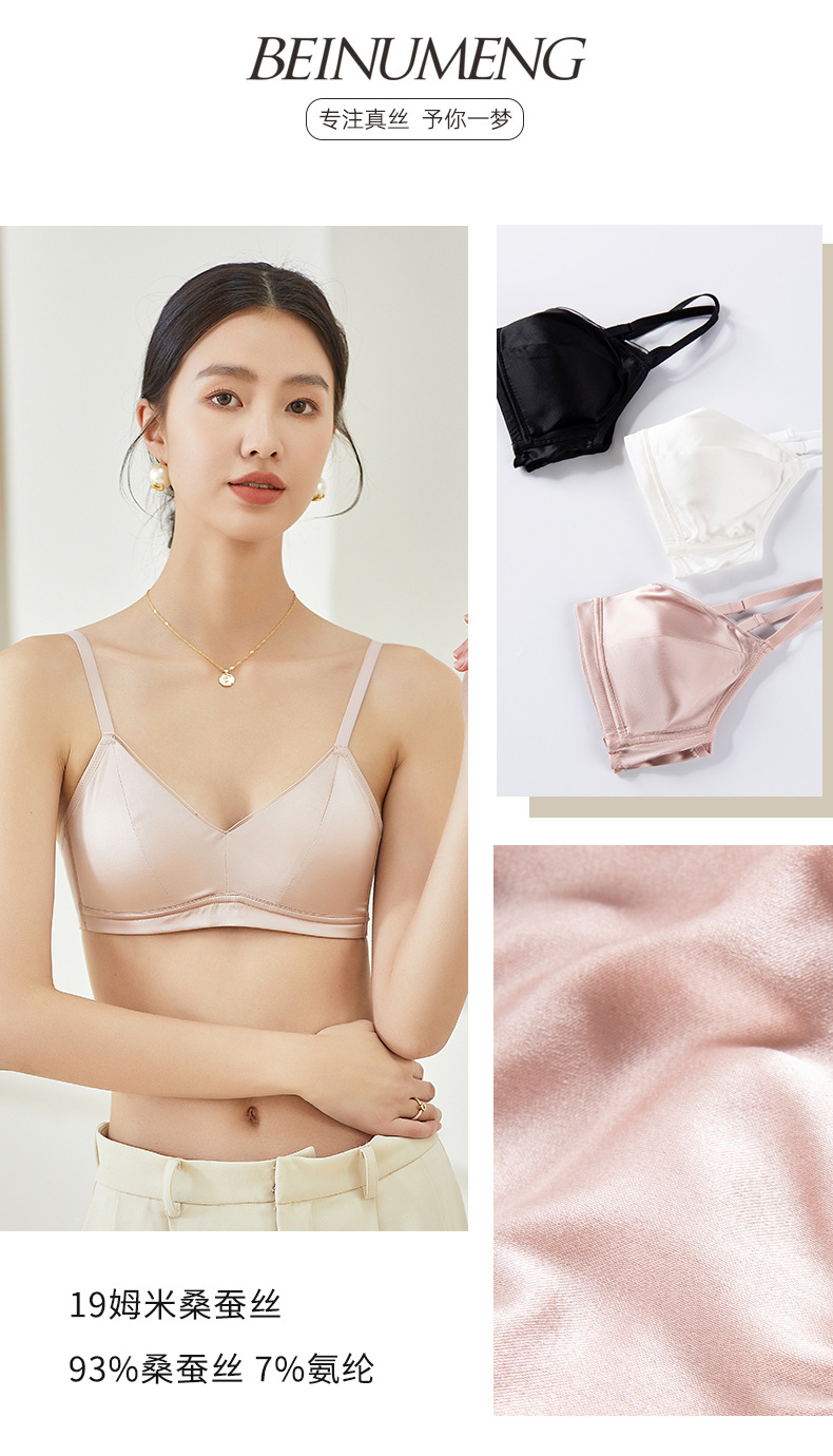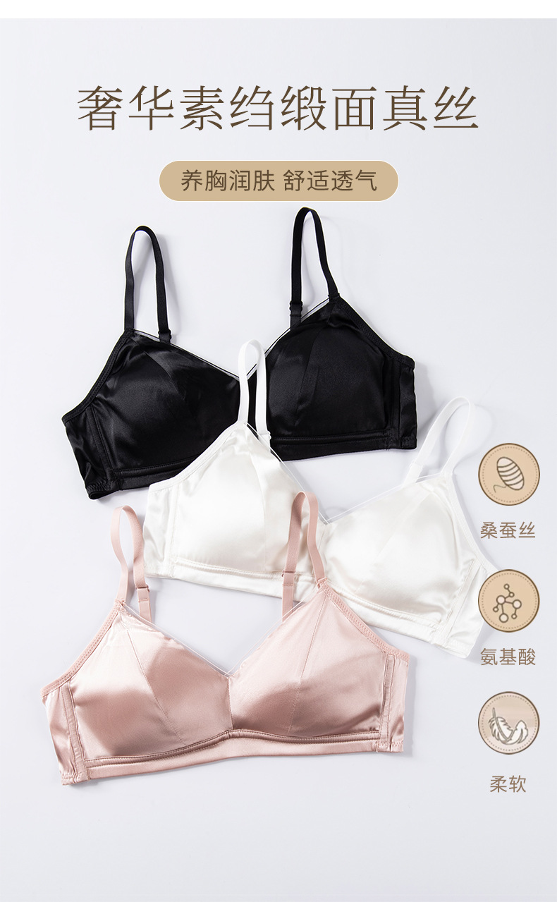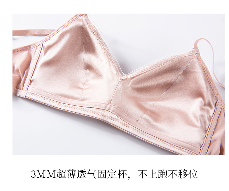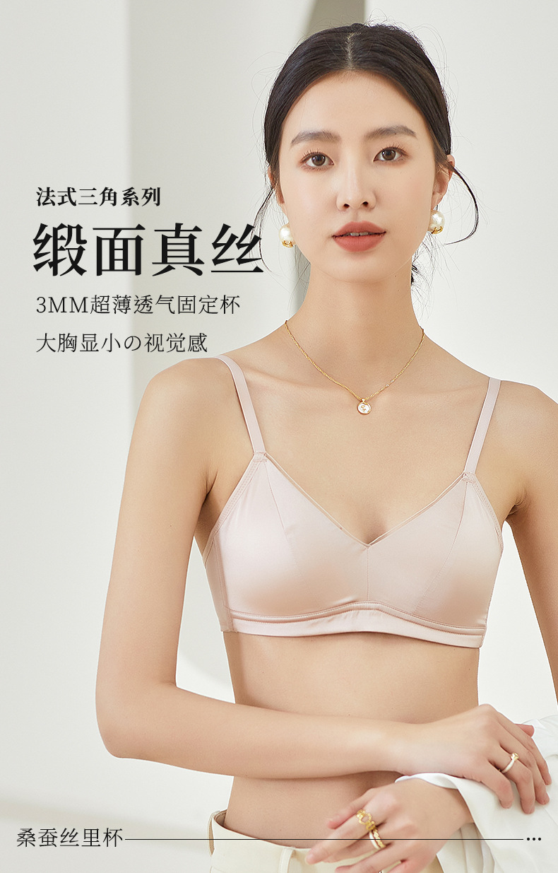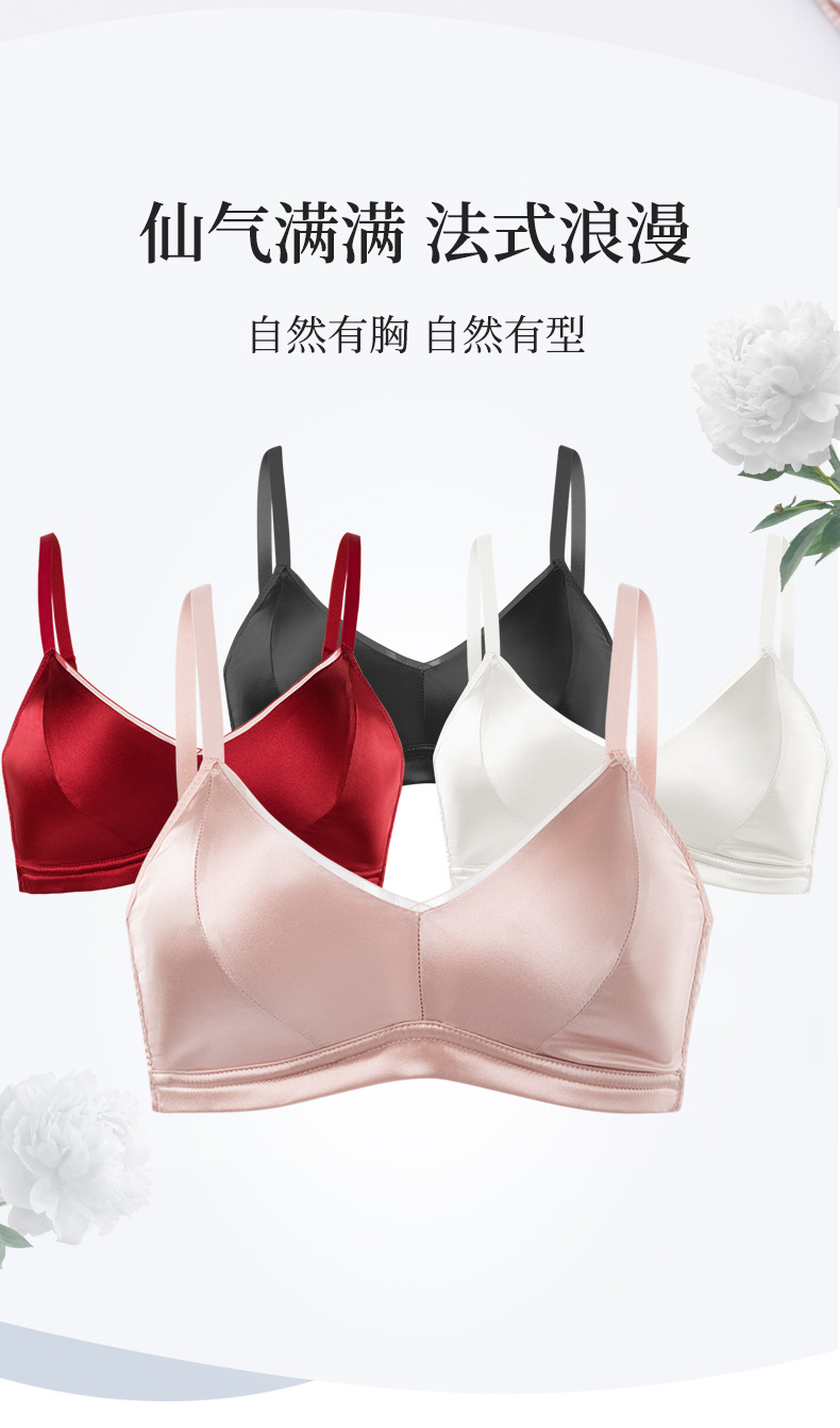 Guo Lian Real Silk Mulberry Silk Satin 프랑스 속옷 여성용 작은 가슴 푸시 업 브라 스틸 링이없는 얇은 가슴 디스플레이 작은 브래지어스토어 가기