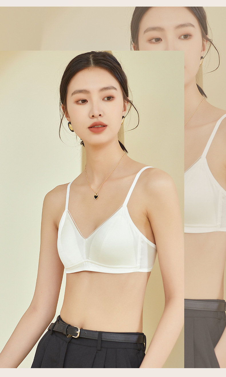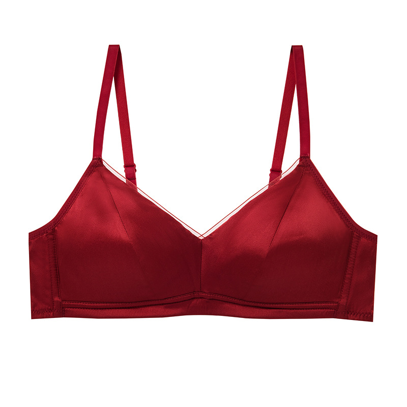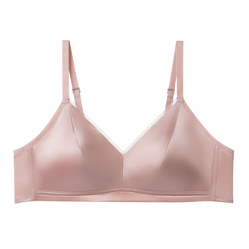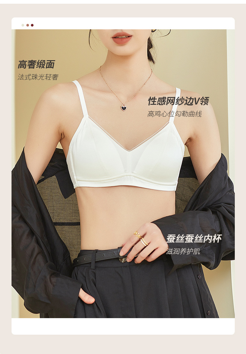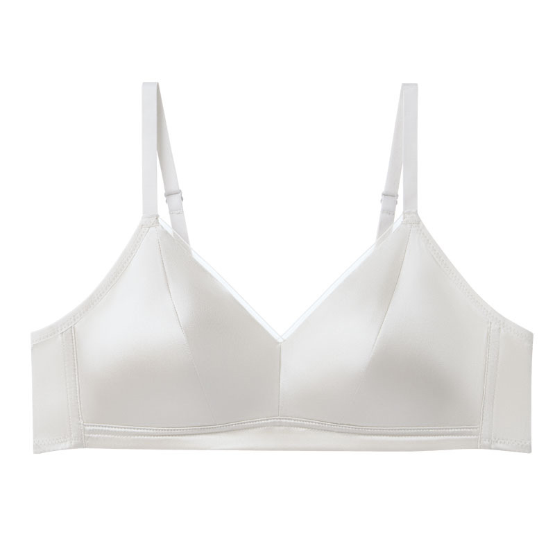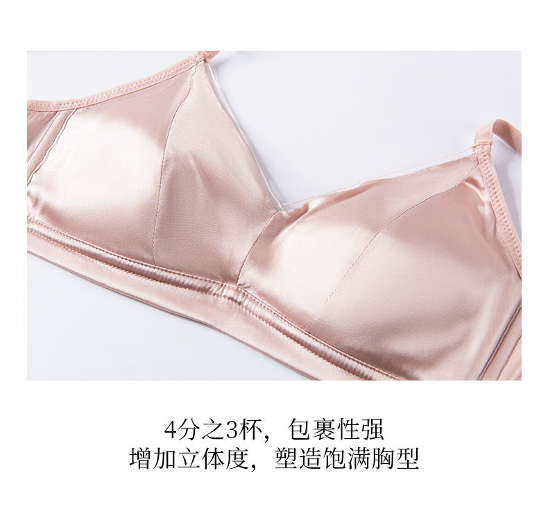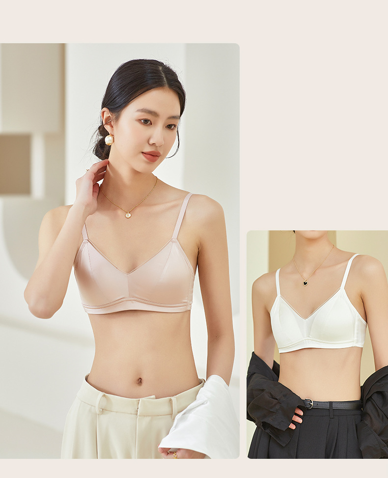 Guo Lian Real Silk Mulberry Silk Satin 프랑스 속옷 여성용 작은 가슴 푸시 업 브라 스틸 링이없는 얇은 가슴 디스플레이 작은 브래지어스토어 가기