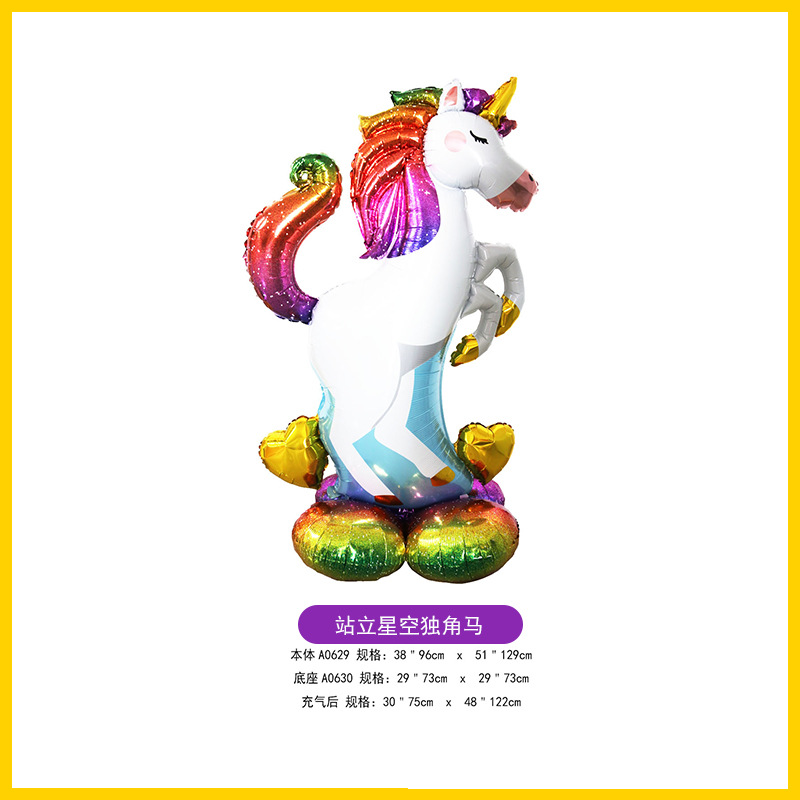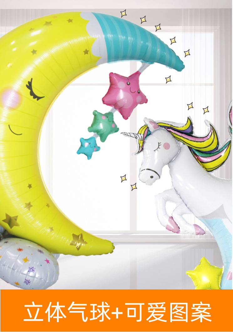 만화 크리스마스 유니콘 말 달 알루미늄 필름 서 풍선 생일 파티 휴일 장식 배경
