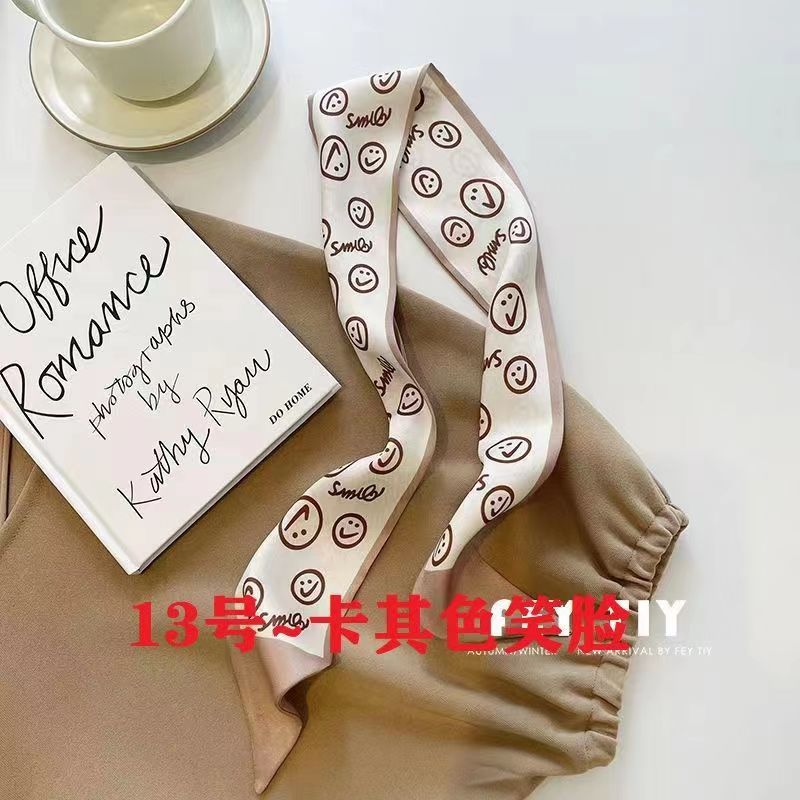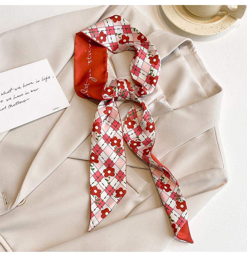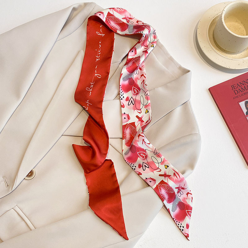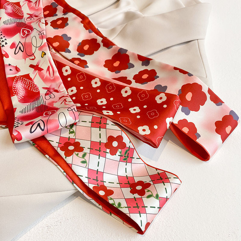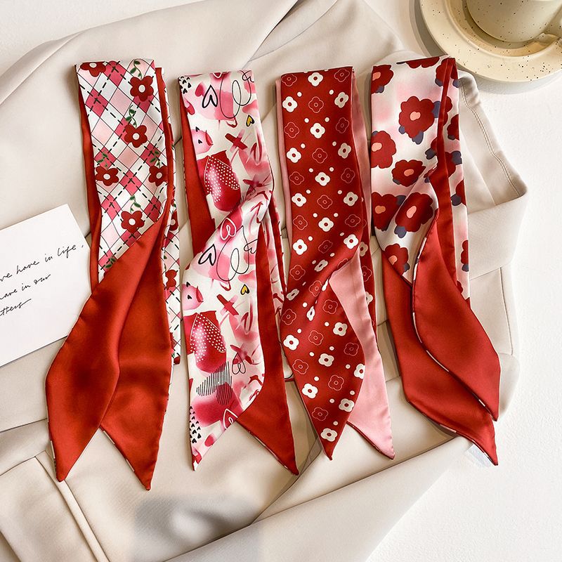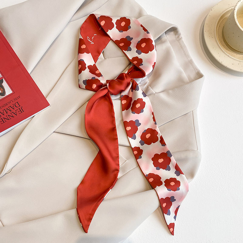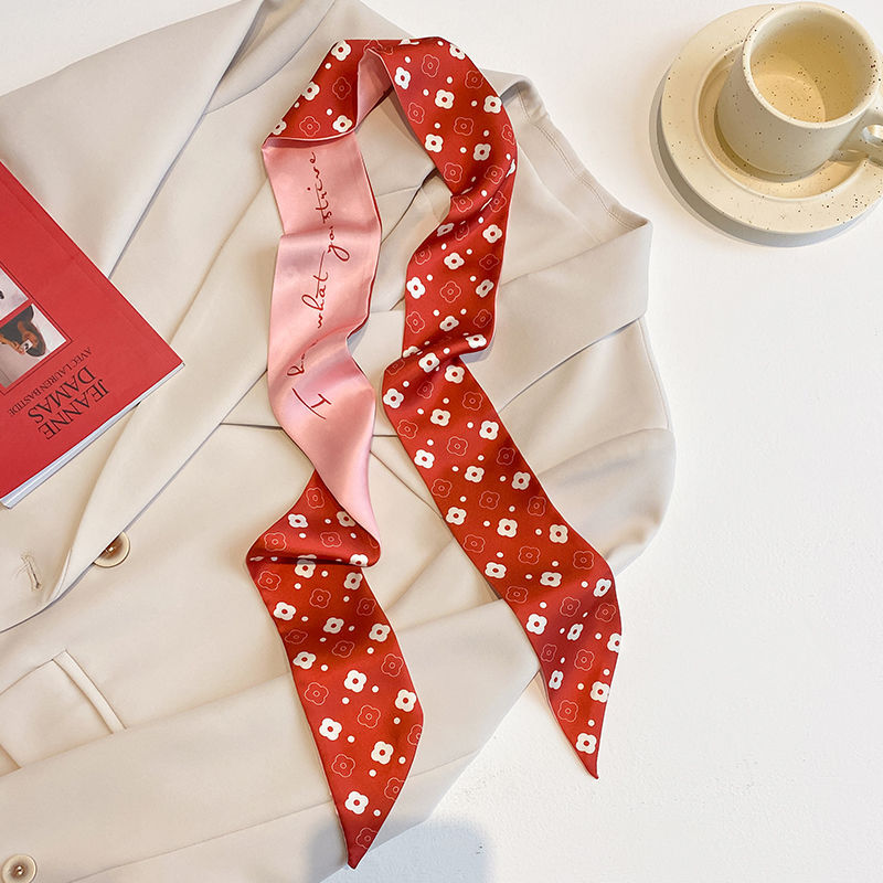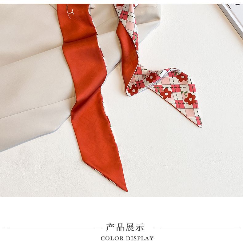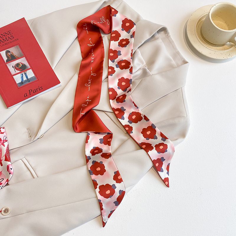 화이트 토마토 레드 양면 유행 작은 실크 스카프 여자의 한국 스타일 헤어 밴드 여름 장식 넥타이 가방 리본 긴 스카프