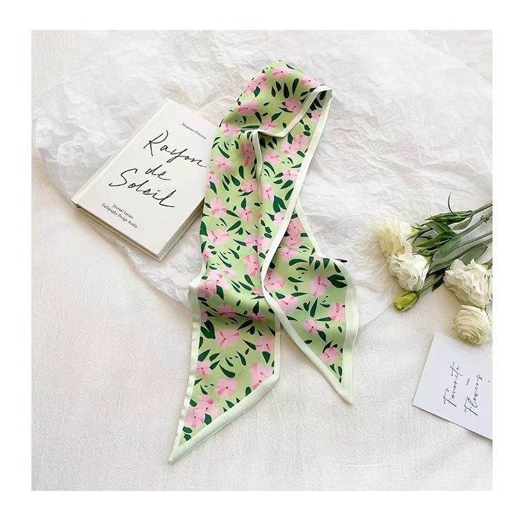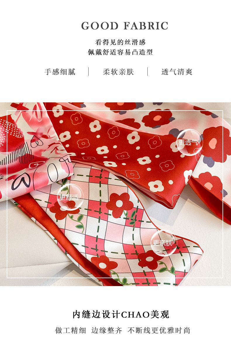 화이트 토마토 레드 양면 유행 작은 실크 스카프 여자의 한국 스타일 헤어 밴드 여름 장식 넥타이 가방 리본 긴 스카프스토어 가기
