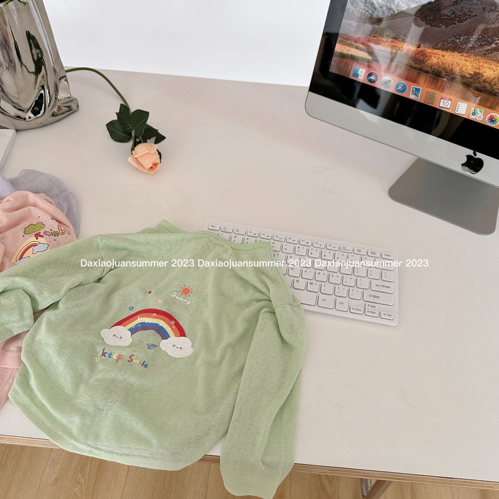 사이즈 롤 23 여름 새로운 어린이 얇은 코트 단색 무지개 카디건 소년 소녀 아기 외국 스타일 아동복 도매