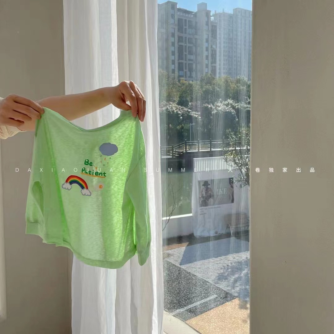 사이즈 롤 23 여름 새로운 어린이 얇은 코트 단색 무지개 카디건 소년 소녀 아기 외국 스타일 아동복 도매스토어 가기