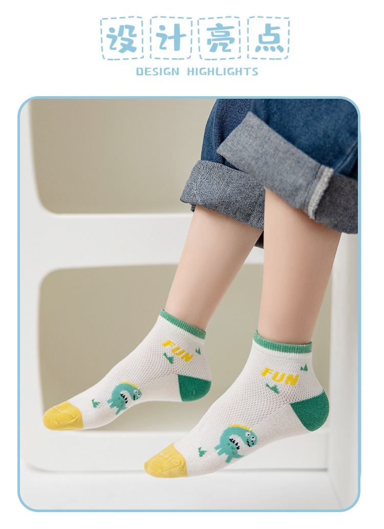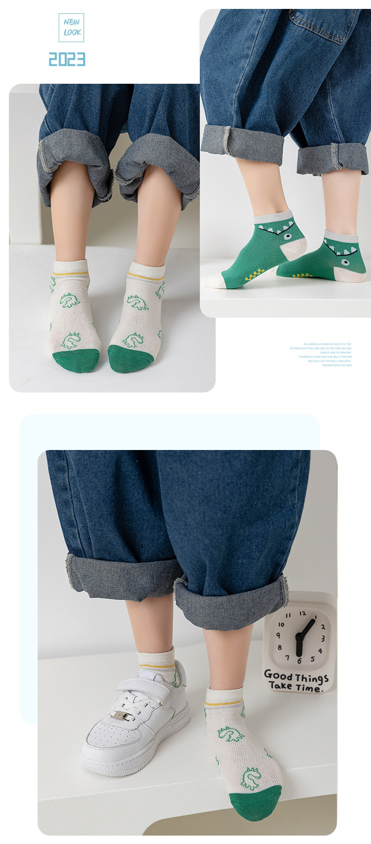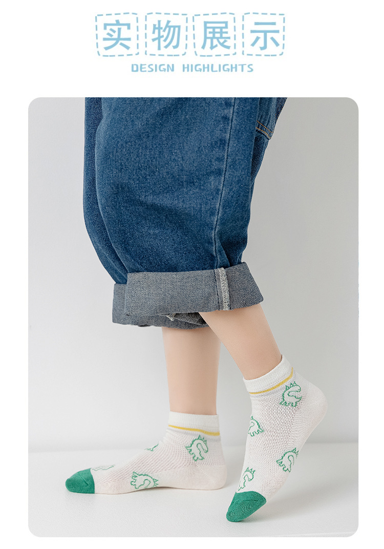 소년 어린이 양말 회색 공룡 카드 스타킹 통기성 얇은 어린이 여름 유리 스타킹 만화 메쉬 양말스토어 가기