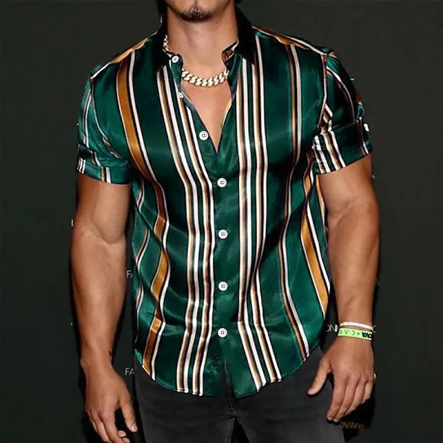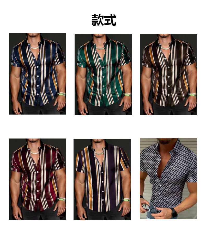 2023 새로운 국경 비즈니스 3d 인쇄 줄무늬 캐주얼 남성 휴가 해변 하와이 반팔 셔츠스토어 가기