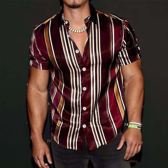 2023 새로운 국경 비즈니스 3d 인쇄 줄무늬 캐주얼 남성 휴가 해변 하와이 반팔 셔츠