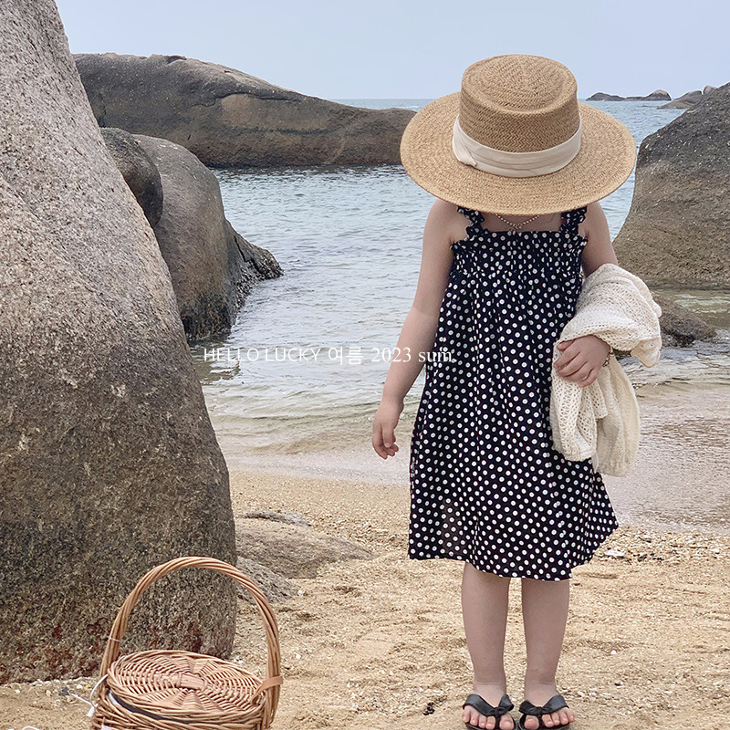 Miaoxuan 아동복 소녀의 여름 원피스 원피스 2023 새로운 어린이 스트랩 원피스 여름 물방울 무늬 원피스 소녀의 공주 원피스
