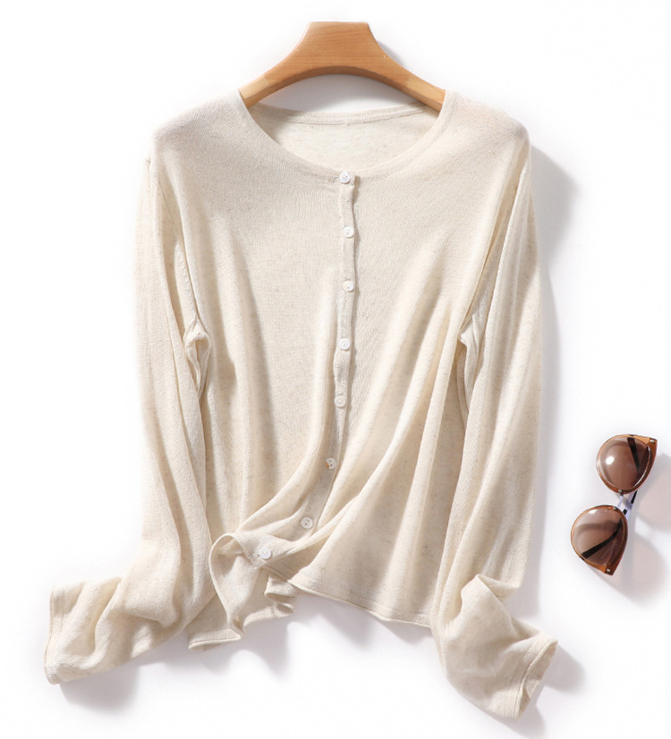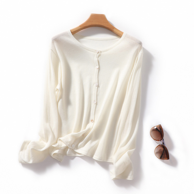 자외선 차단제 아이스 실크 라미 니트 가디건 여성용 얇은 텐셀 탑 2023 여름 새로운 짧은 코트 에어컨 셔츠스토어 가기