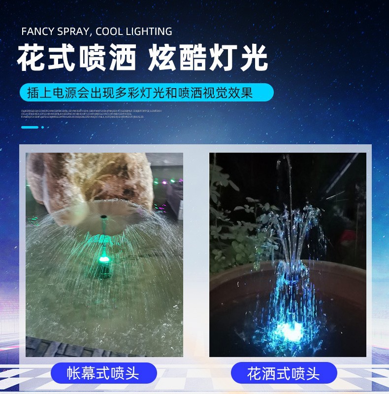 샤워 버섯 분수 스프링클러 풀 세트 수영장 Rockery 풍경 다채로운 조명 풍경 물고기 연못 야외 안뜰 잠수정 펌프