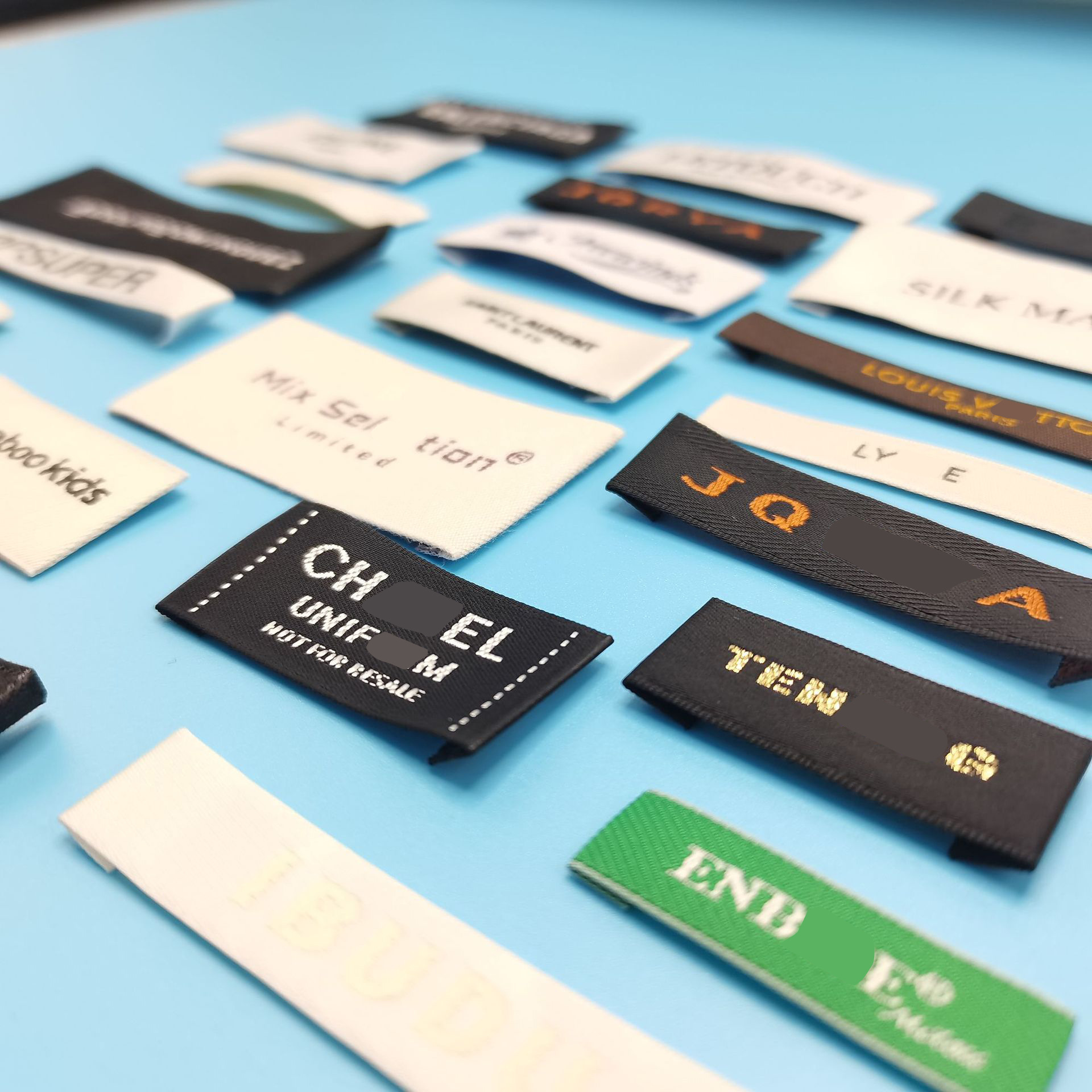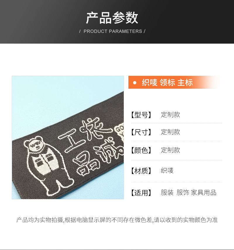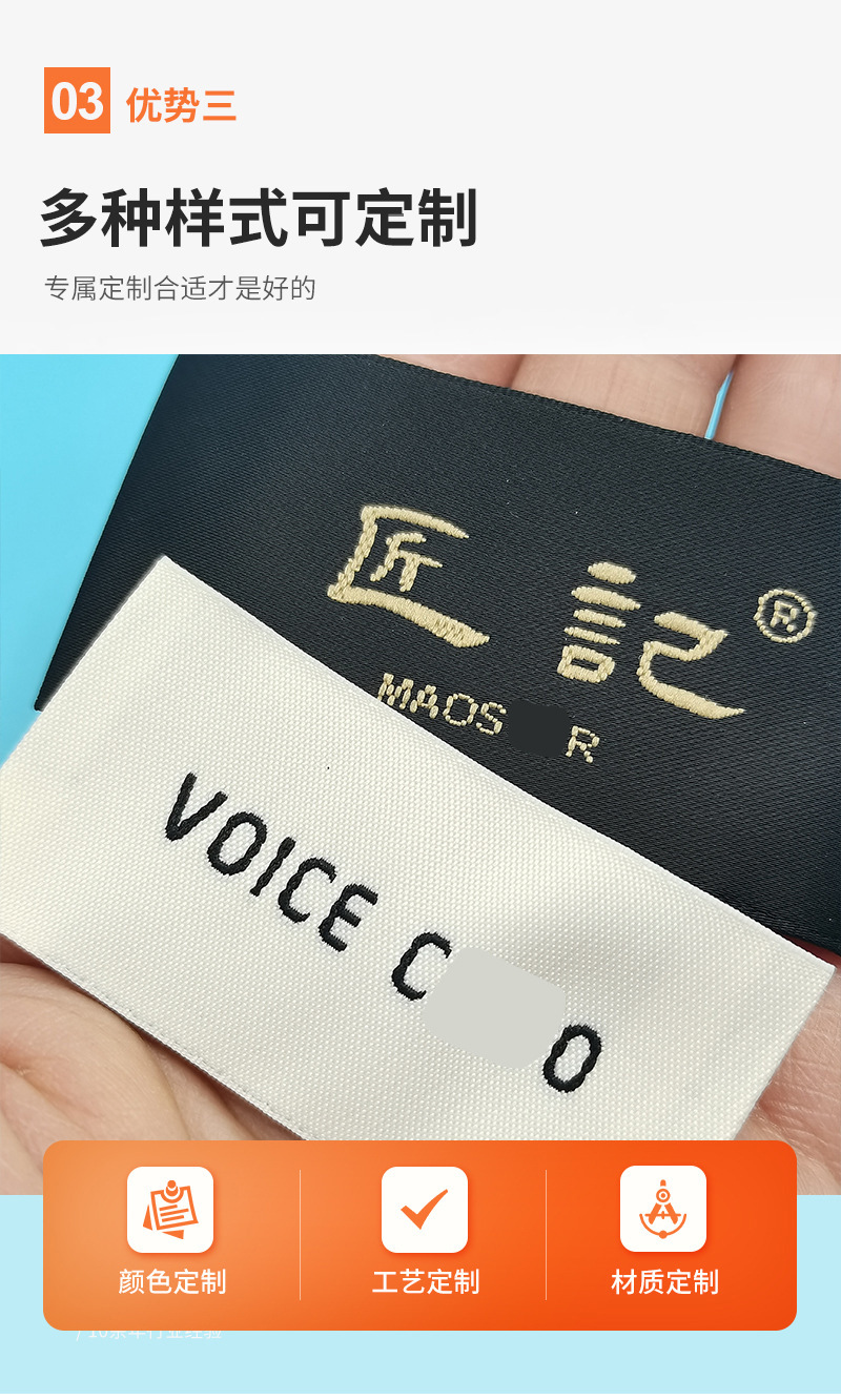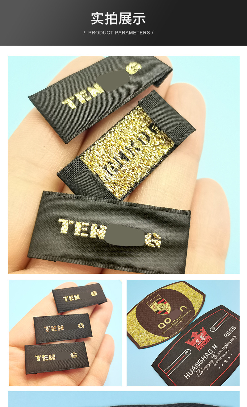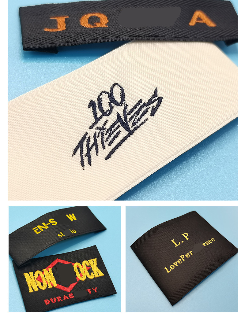 의류 액세서리 제작 새틴 후크 엣지 칼라 라벨 고밀도 폴리에스터 천 라벨 가방, 신발 및 모자 남성 및 여성 의류 메인 라벨