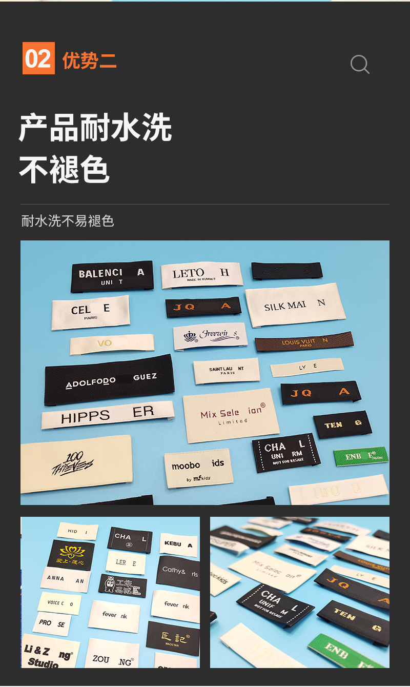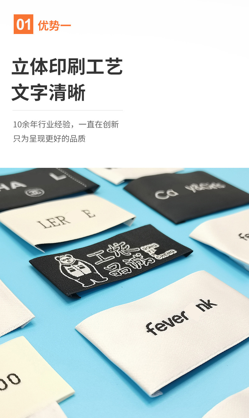 의류 액세서리 제작 새틴 후크 엣지 칼라 라벨 고밀도 폴리에스터 천 라벨 가방, 신발 및 모자 남성 및 여성 의류 메인 라벨스토어 가기