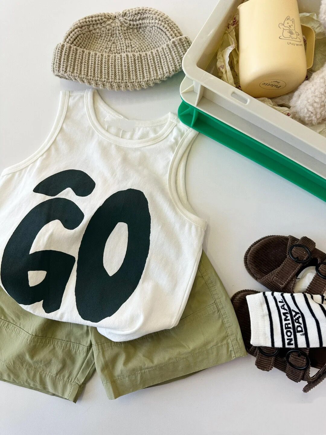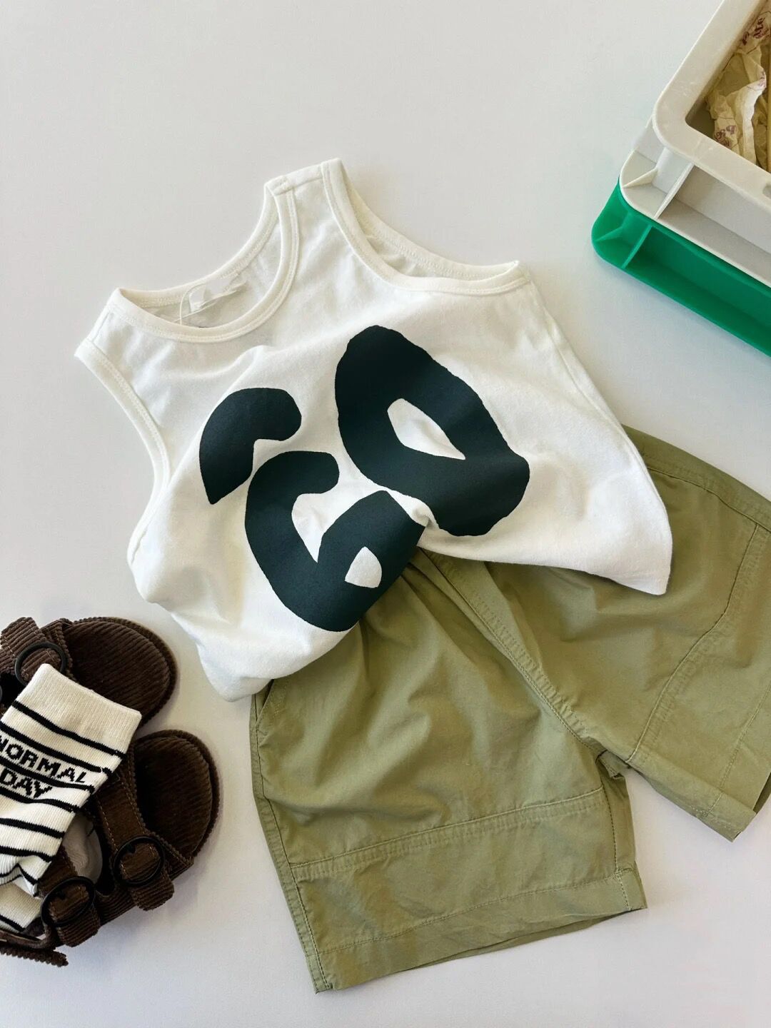 어린이 세트 여름 2023 새로운 한국 스타일 남아 조끼 민소매 티셔츠 캐주얼 짧은 편지 T스토어 가기