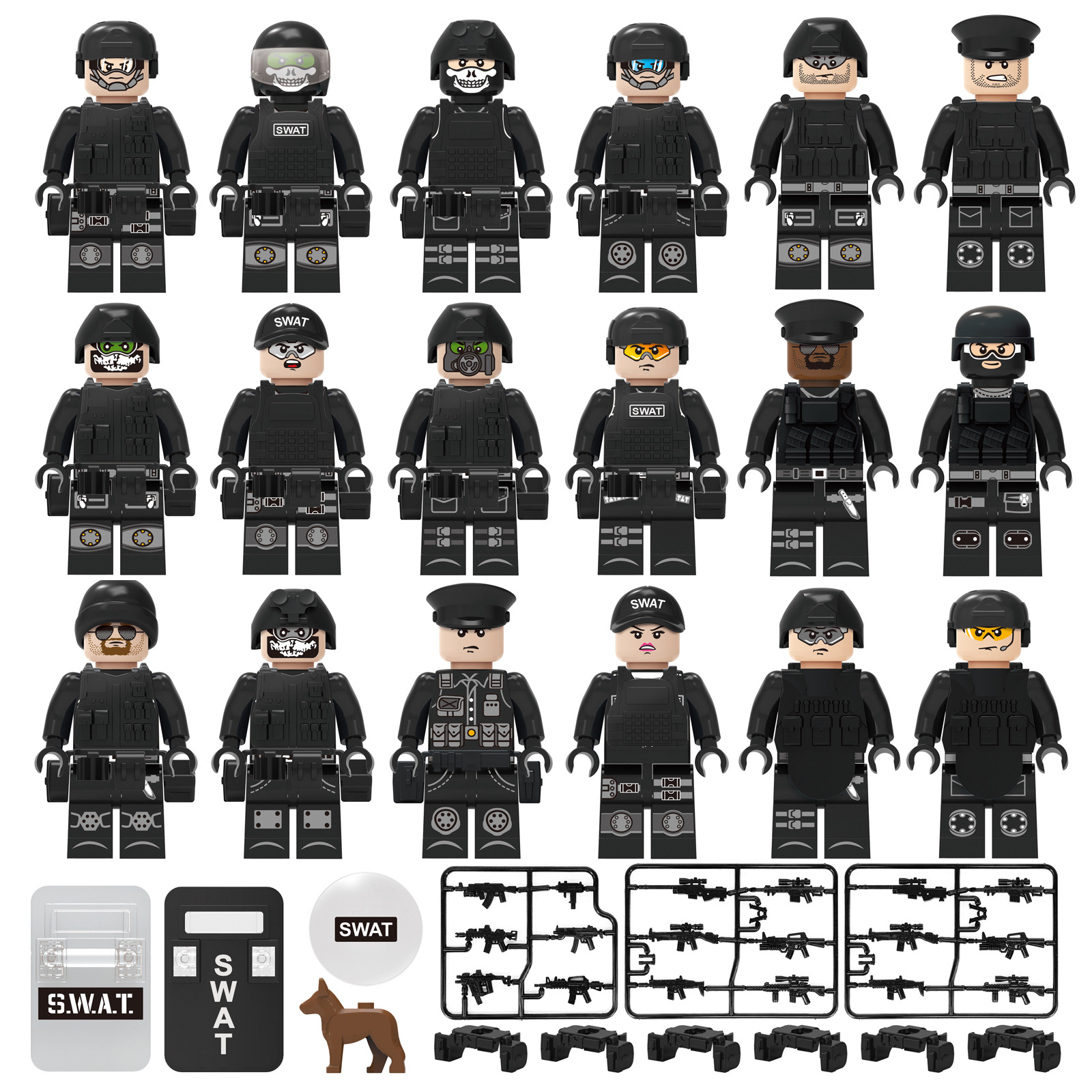 L-21 18 블랙 특수 경찰 군사 빌딩 블록 벨트 경찰 개 보호 방패 군사 팬 장난감을 가진 남자스토어 가기
