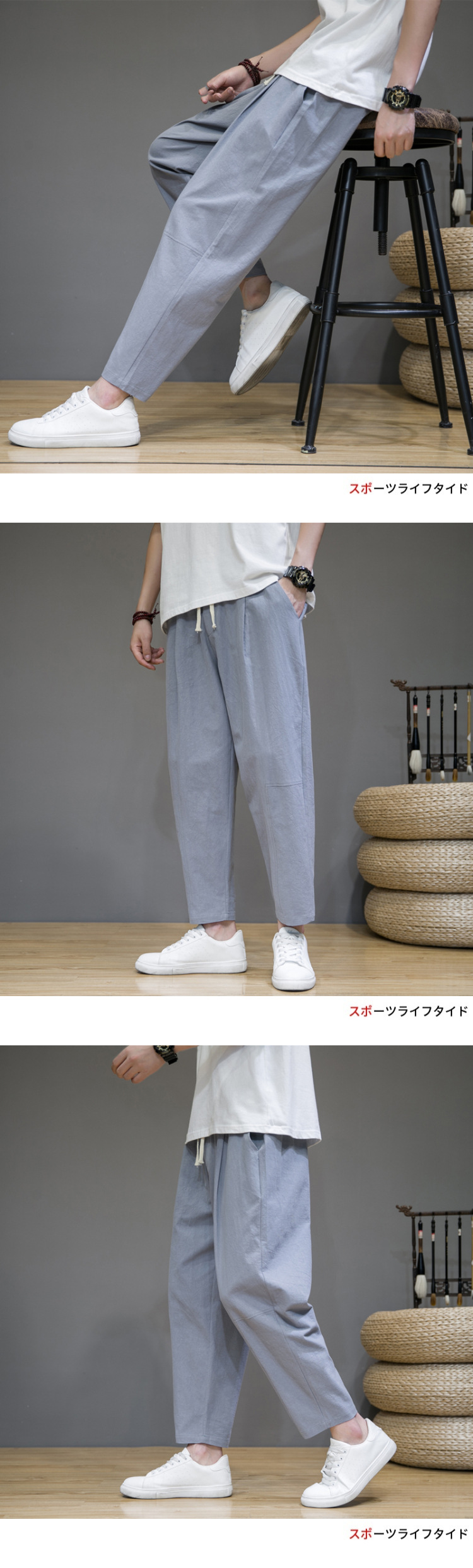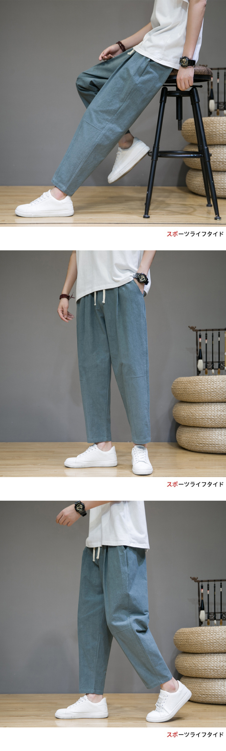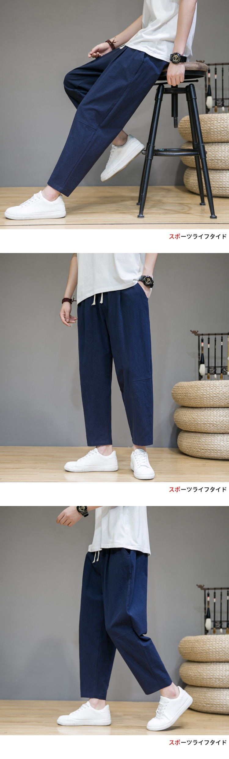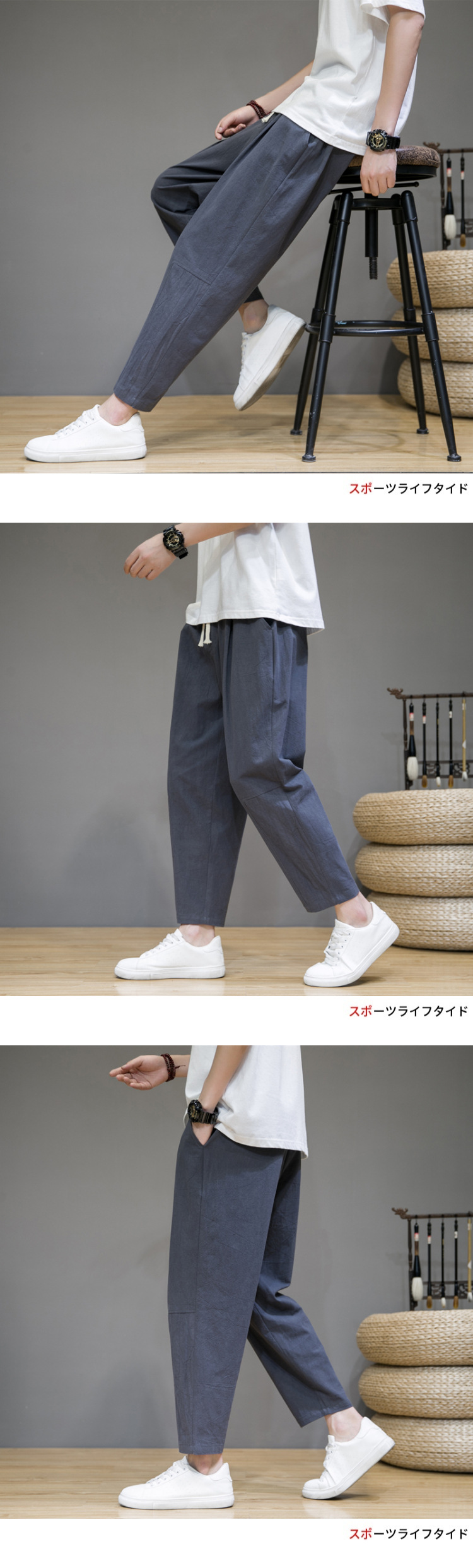 여름 새로운 중국 스타일 남자의 단색 면 린넨 느슨한 발목 길이 바지 청소년 패션 유행 캐주얼 스포츠 바지스토어 가기