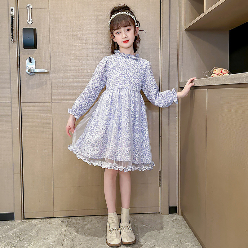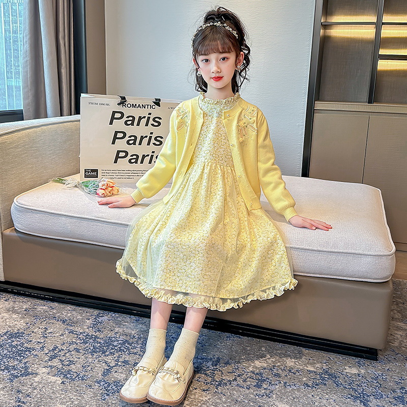 2023 새로운 아동복 소녀 패션 세트 봄 대형 아동 웨스턴 카디건 스웨터 플로럴 스커트 투피스 패션스토어 가기
