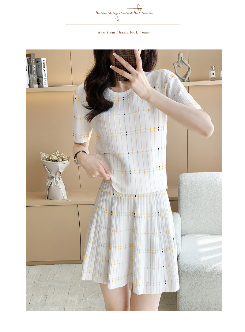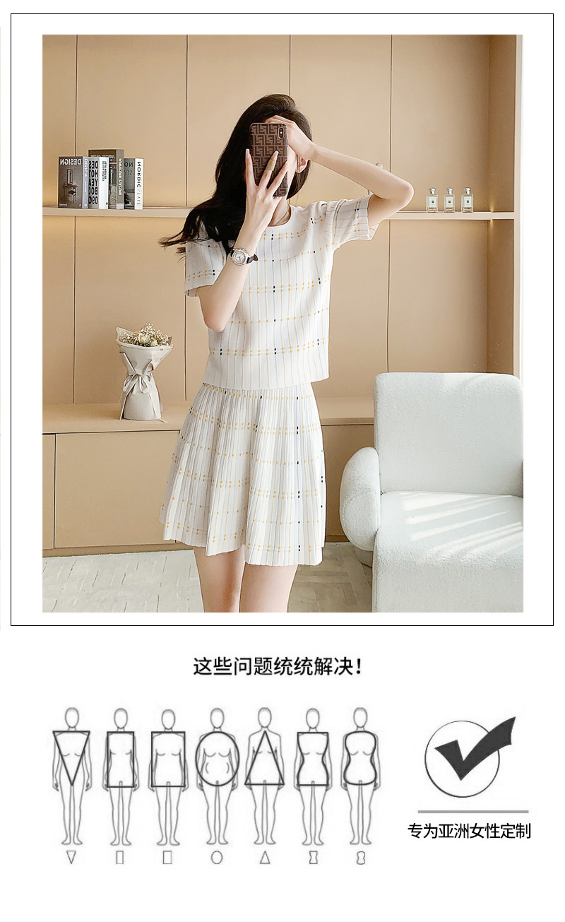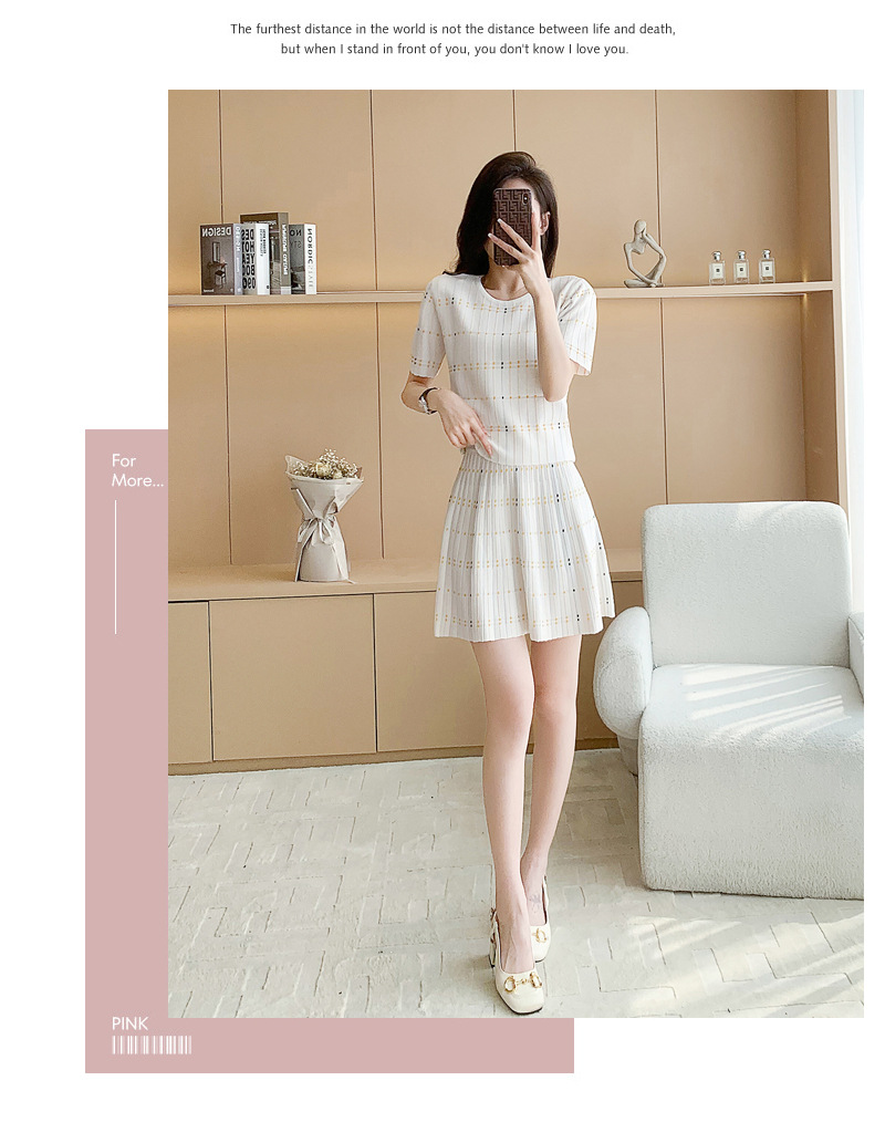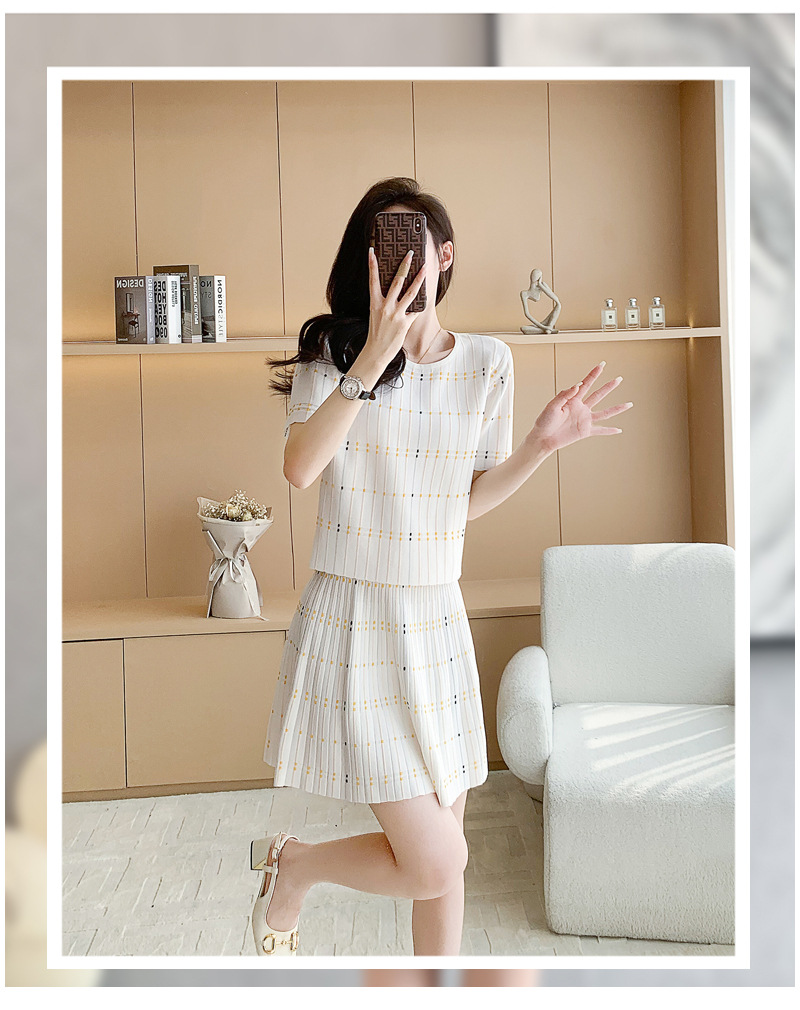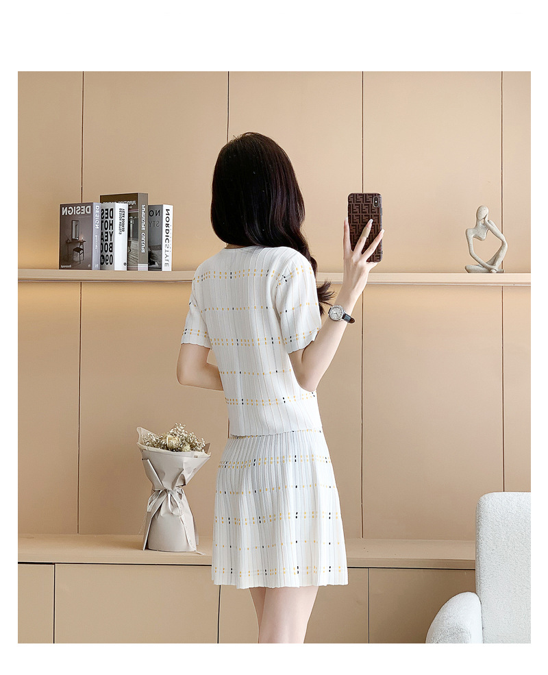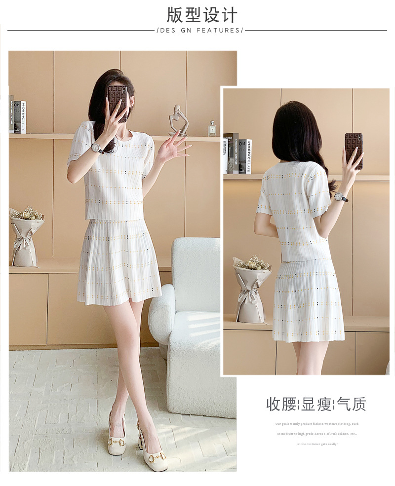샤넬 스타일 유행 캐주얼 세트 여자의 여름 반팔 아이스 실크 프랑스 스타일 우아한 짧은 스커트 A 라인 니트 투피스 원피스스토어 가기