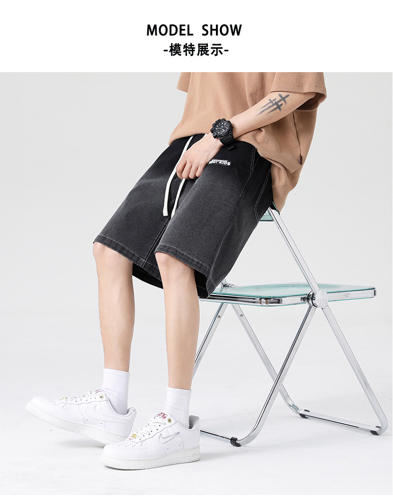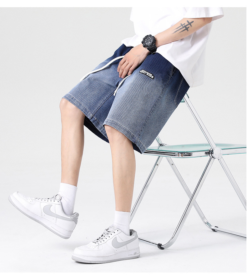 2023 새로운 여름 툴링 데님 반바지 남자의 느슨한 플러스 사이즈 바지 여름 얇은 7 인치 바지스토어 가기