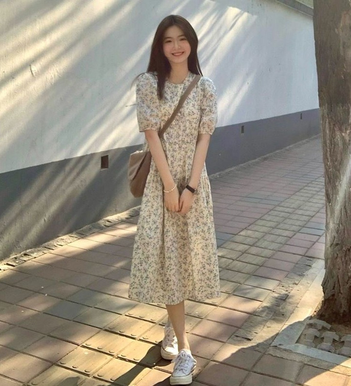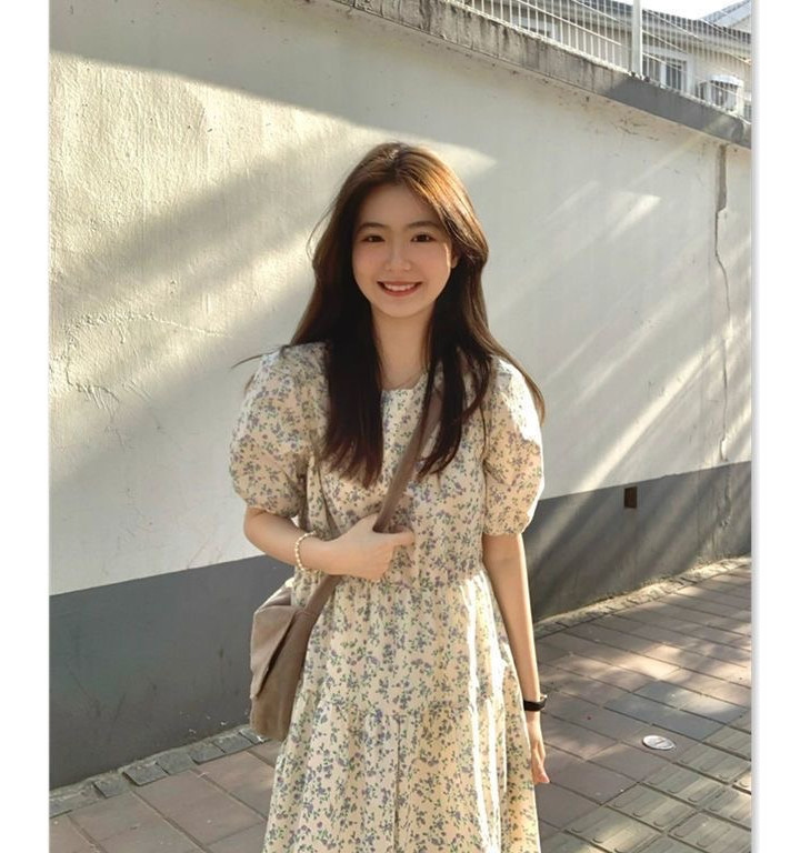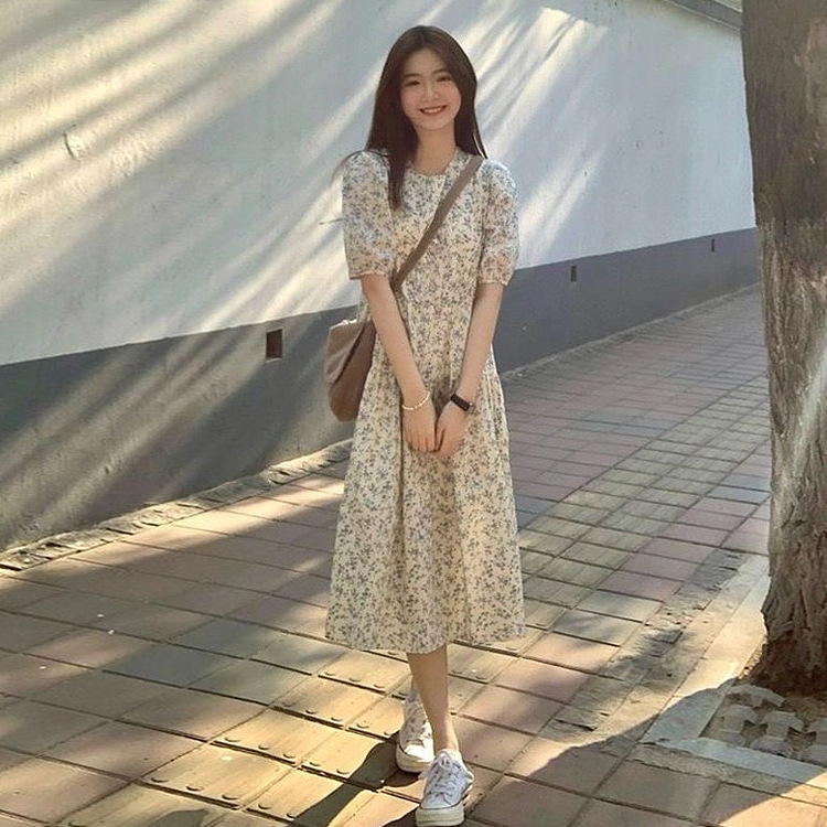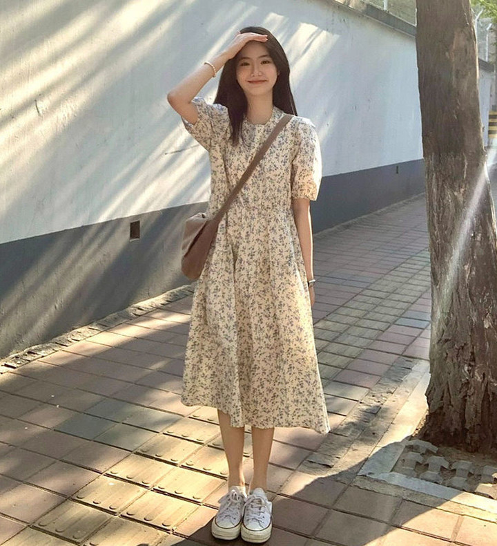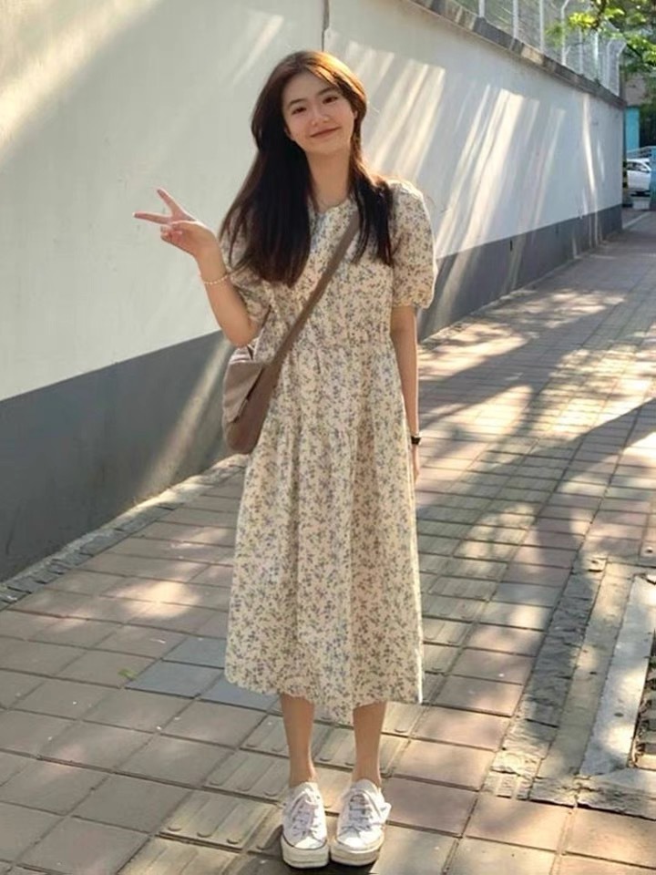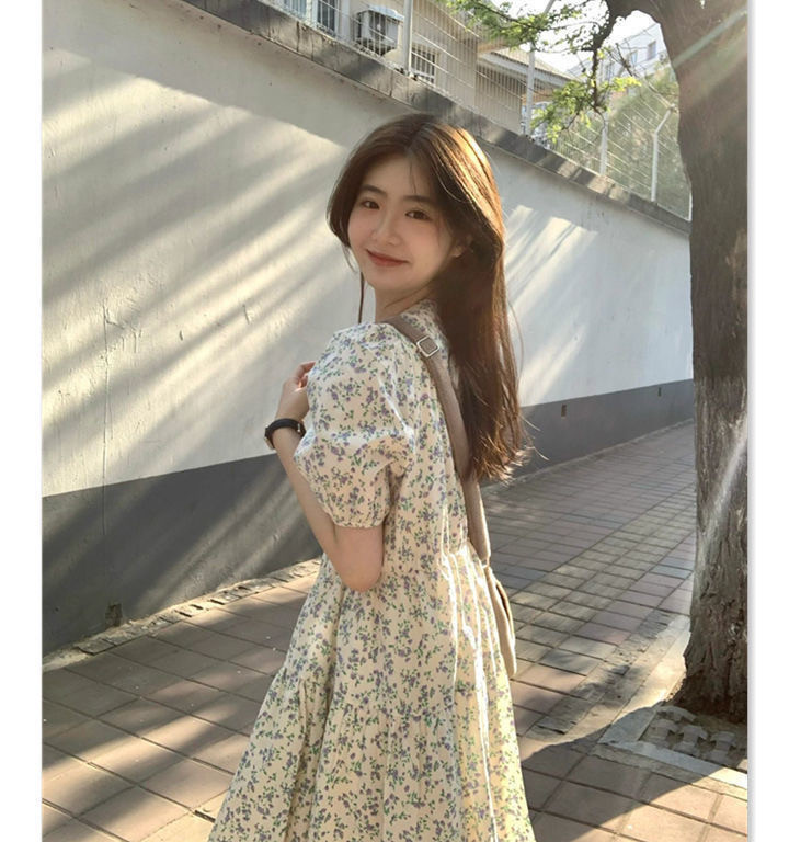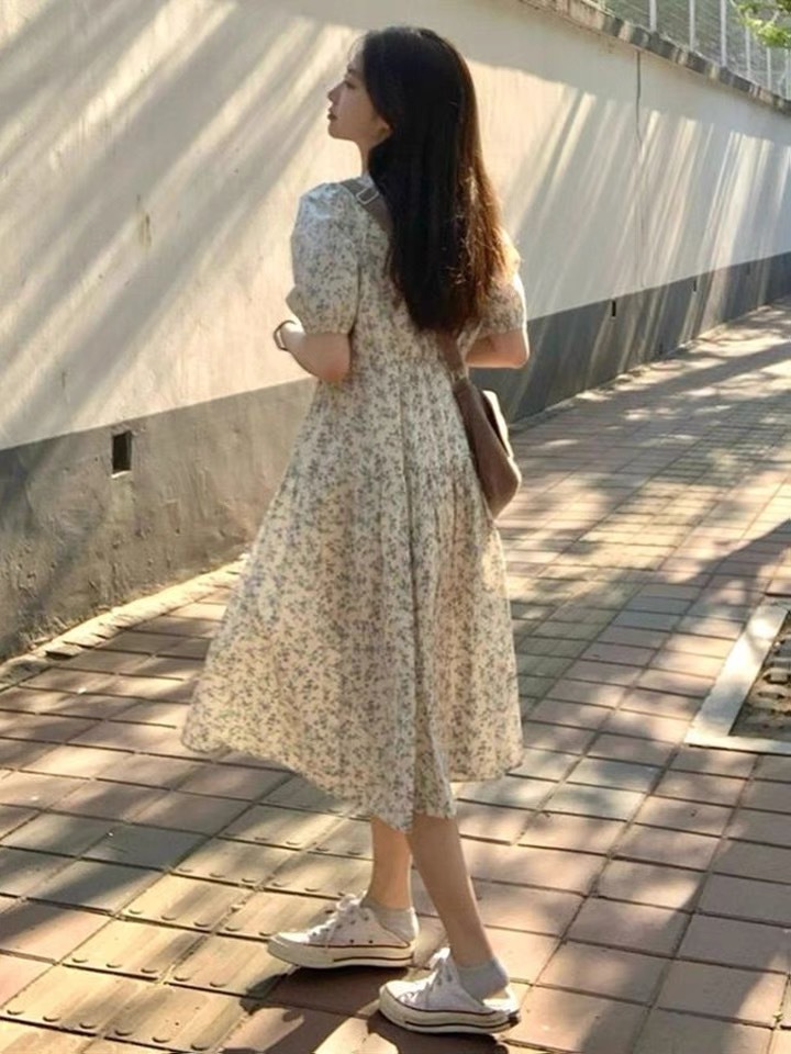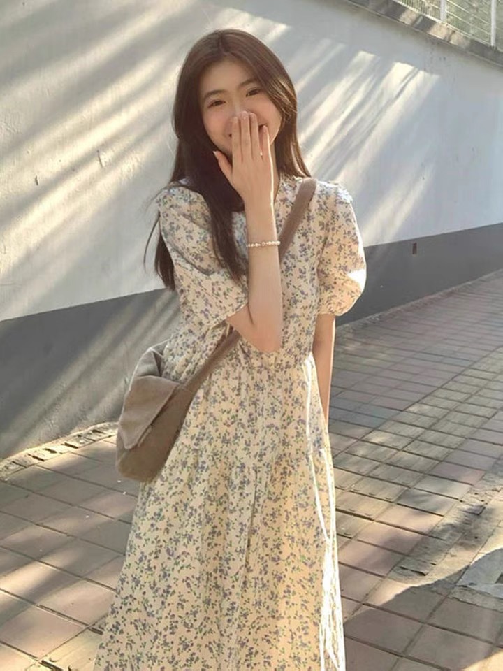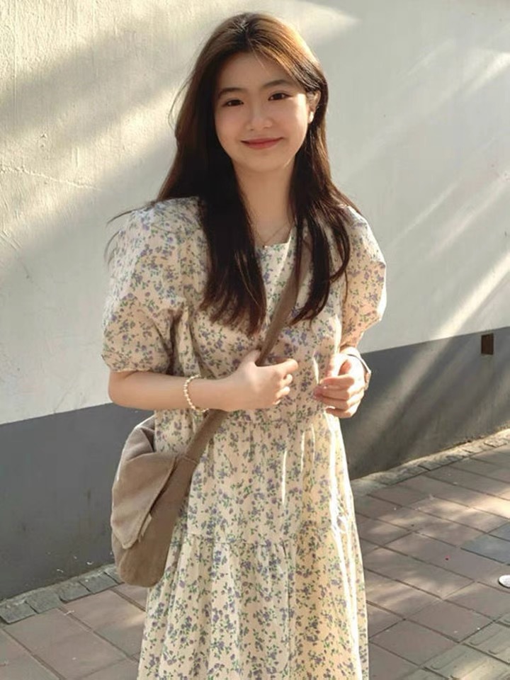 프랑스 스타일 Platycodon Grandiflorum 꽃 원피스 여자의 2023 여름 새로운 짧은 소매 느슨한 복고풍 차 휴식 원피스 우아한 긴 원피스스토어 가기