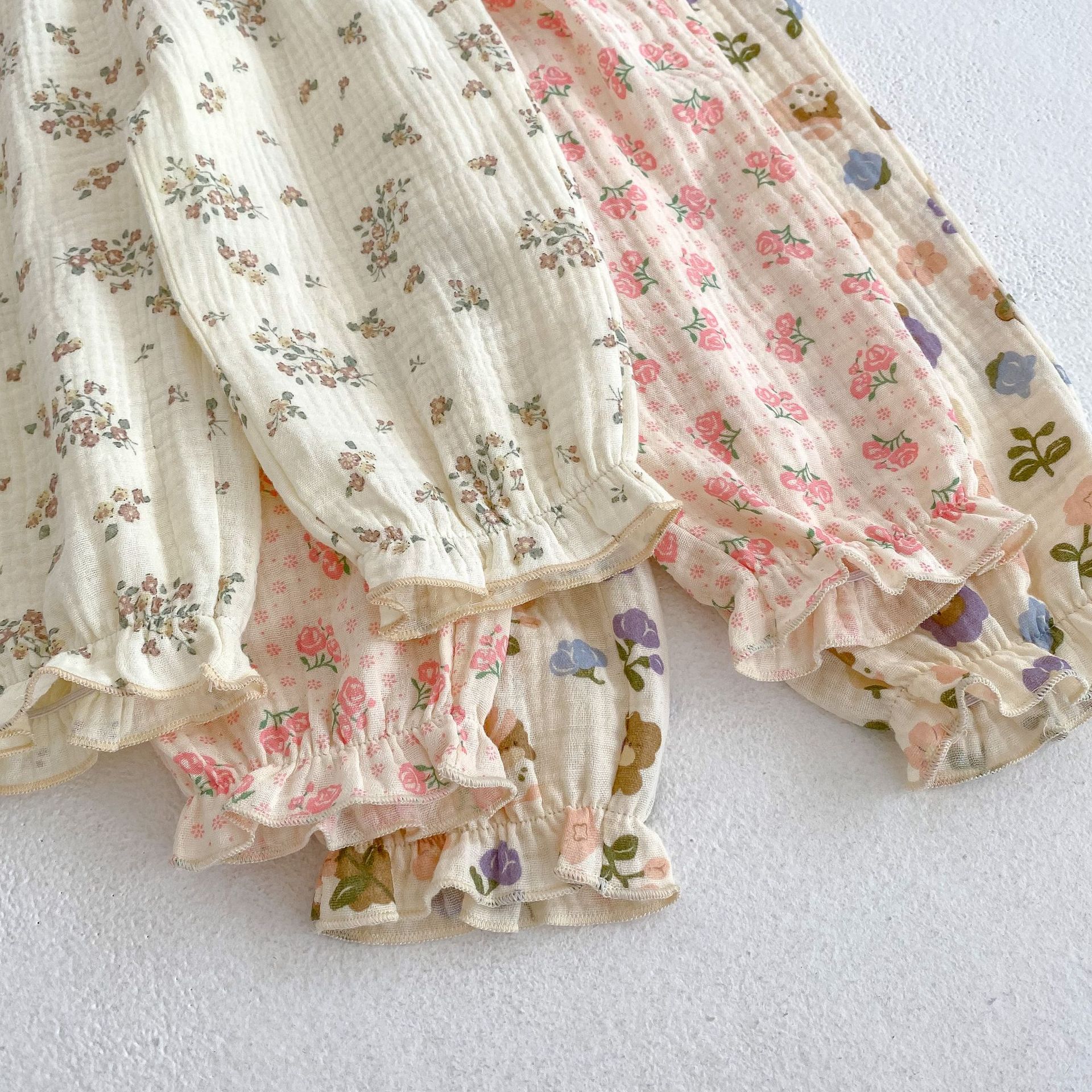 Ins 2025 여름 새 스타일 아기 소녀 아름다운 꽃 무늬 면화 바지 다목적 모기 방지 바지