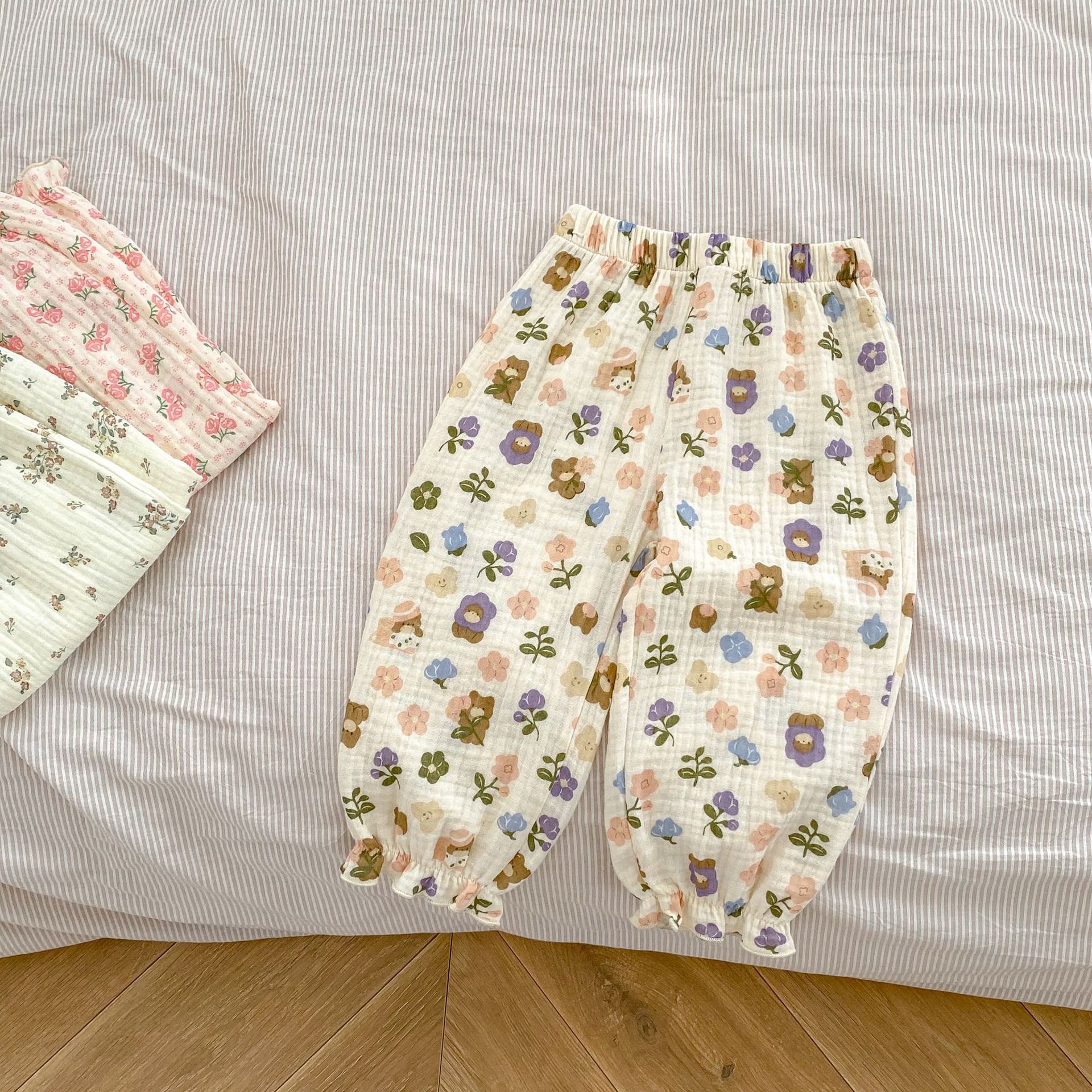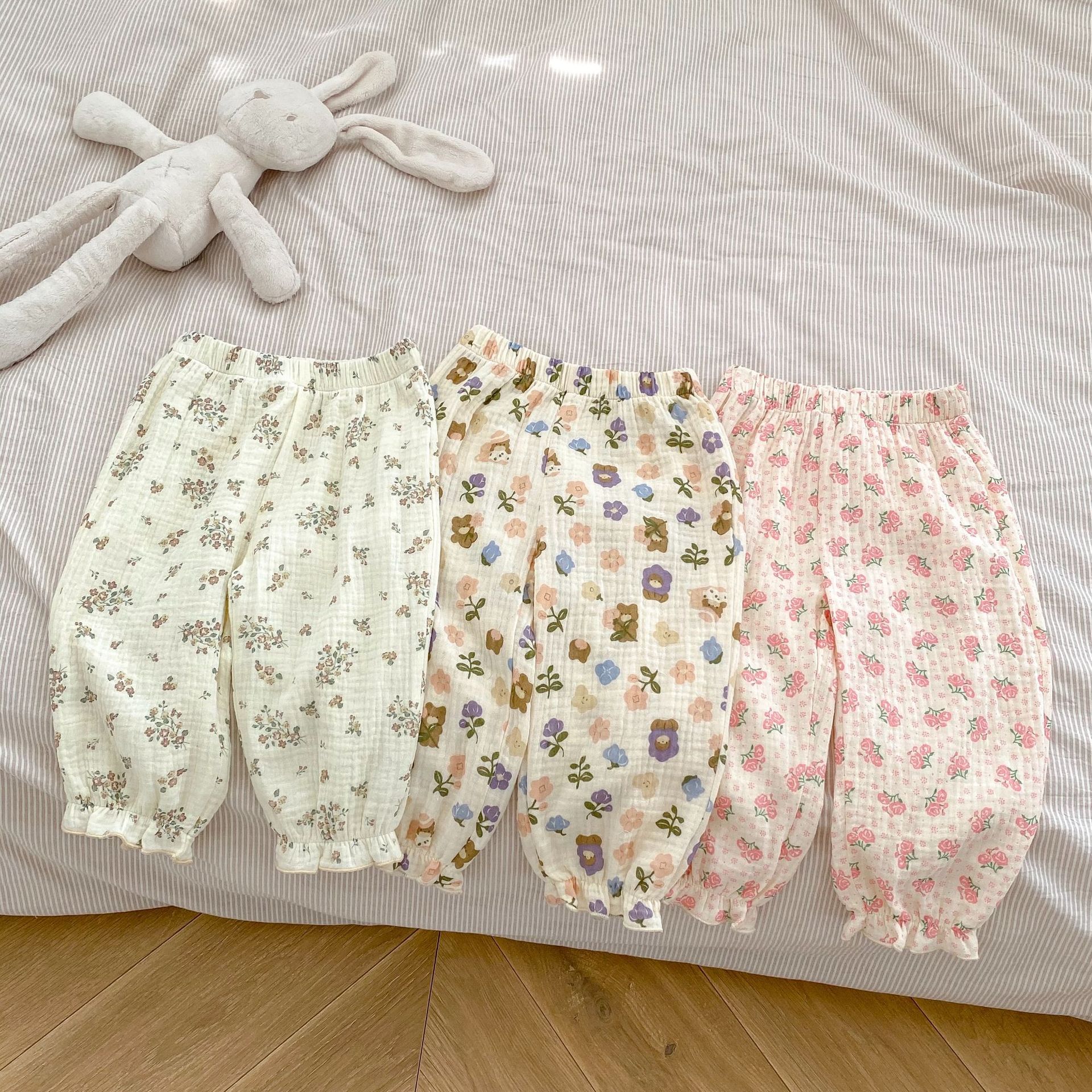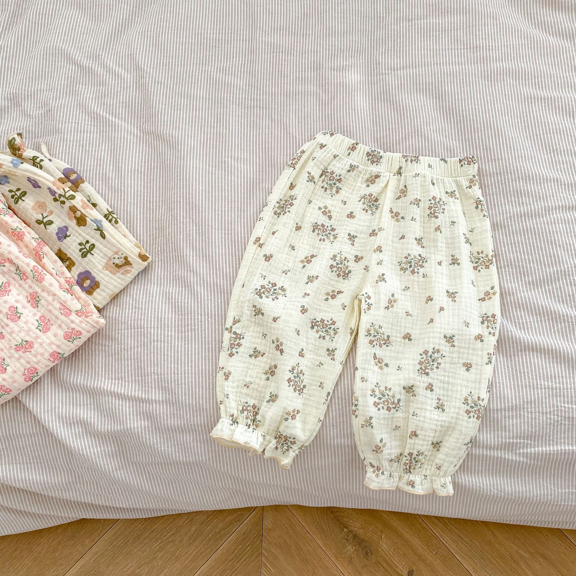 Ins 2025 여름 새 스타일 아기 소녀 아름다운 꽃 무늬 면화 바지 다목적 모기 방지 바지스토어 가기
