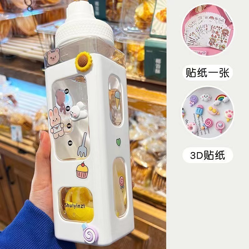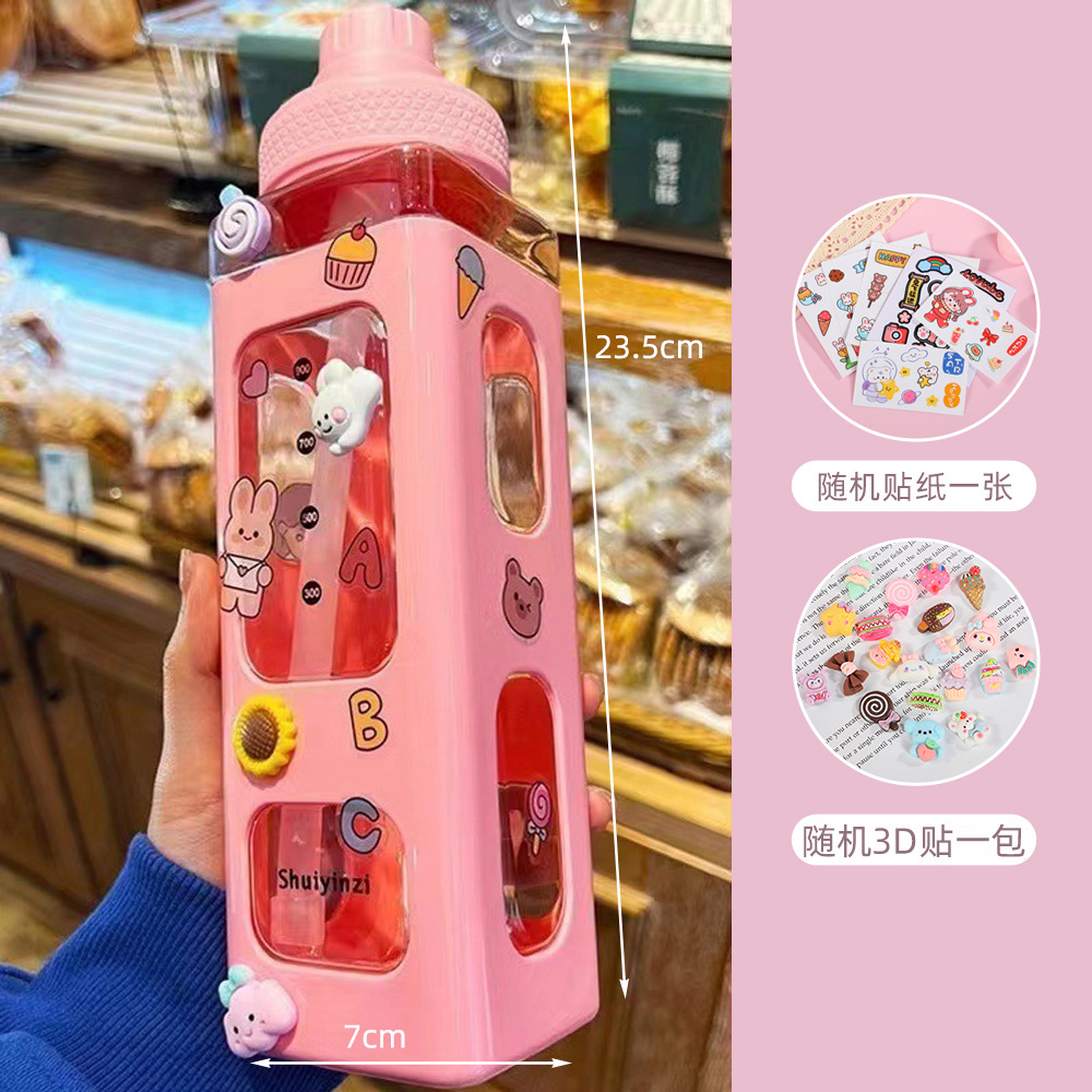 새로운 높은 가치 마카롱 컬러 스퀘어 워터 컵 대용량 휴대용 워터 컵 실리콘 밀짚 물병스토어 가기