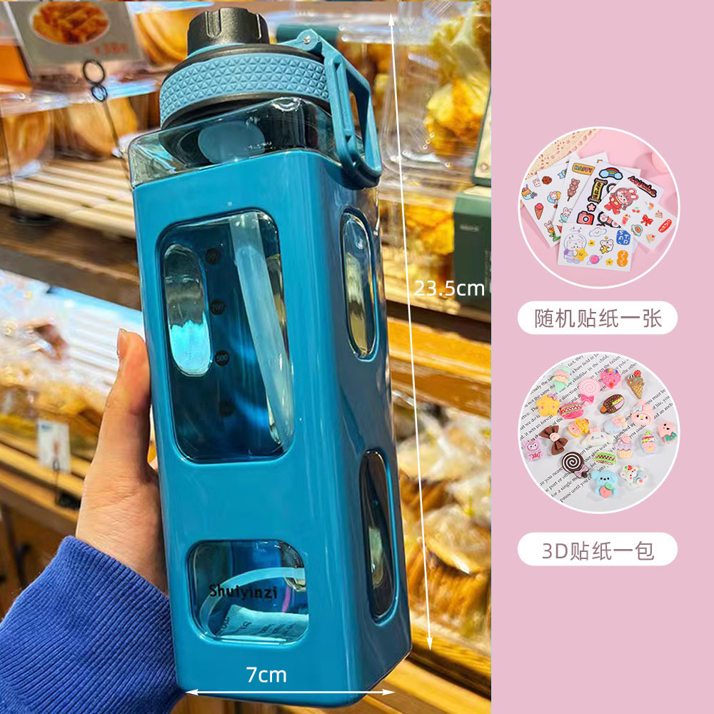 새로운 높은 가치 마카롱 컬러 스퀘어 워터 컵 대용량 휴대용 워터 컵 실리콘 밀짚 물병