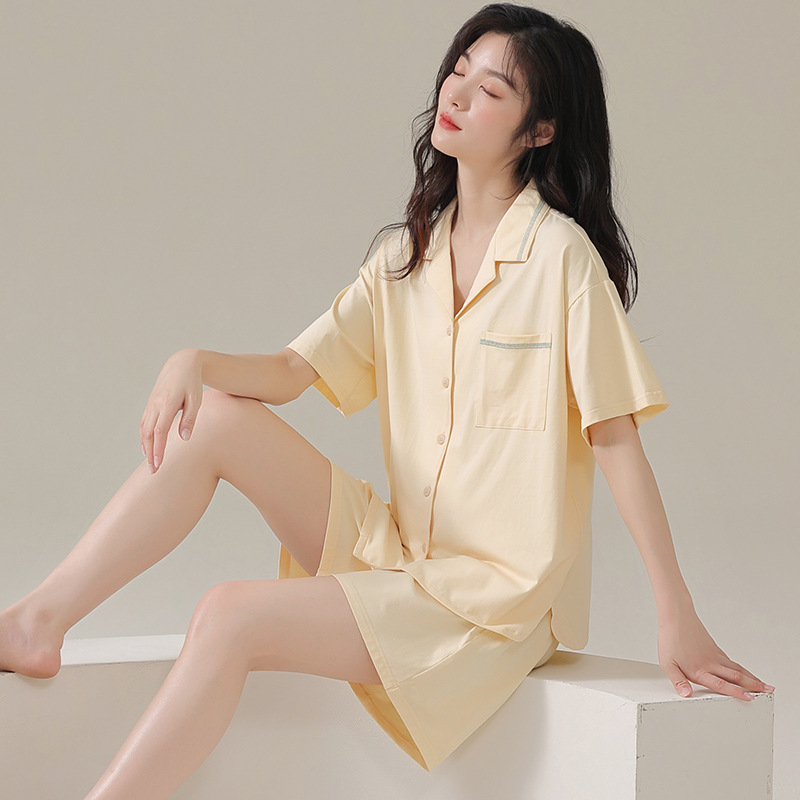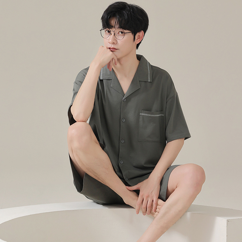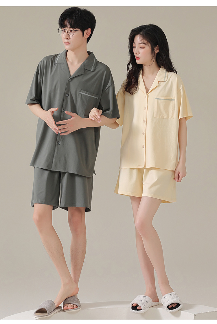 모달 커플 잠옷 여름 얇은 반팔 아이스 실크 가정 옷 여름 남성과 여성은 간단한 세트 외부에서 착용 할 수 있습니다스토어 가기