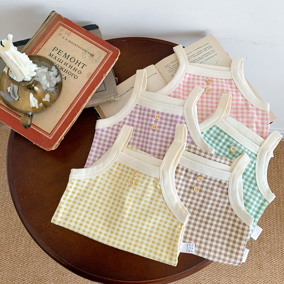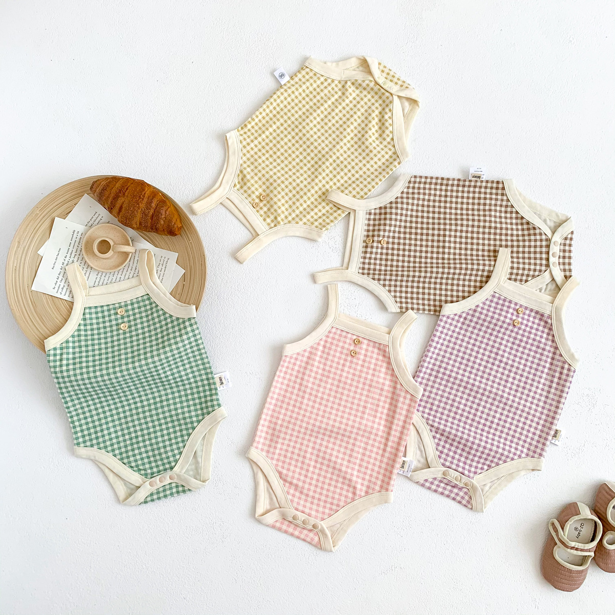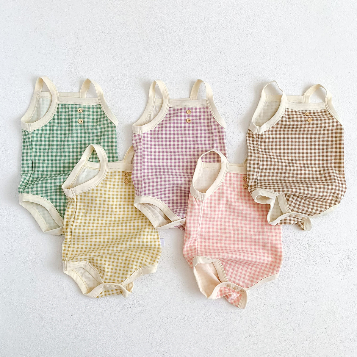 아기 소녀의 여름 캐미솔 가방 유아 및 어린이를위한 민소매 부드러운 격자 무늬 하이야에 뚱뚱한 옷스토어 가기