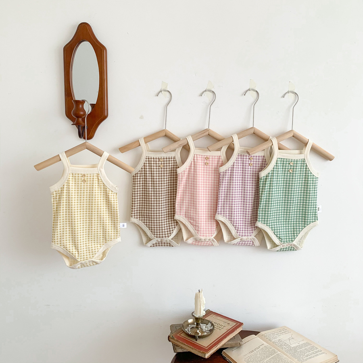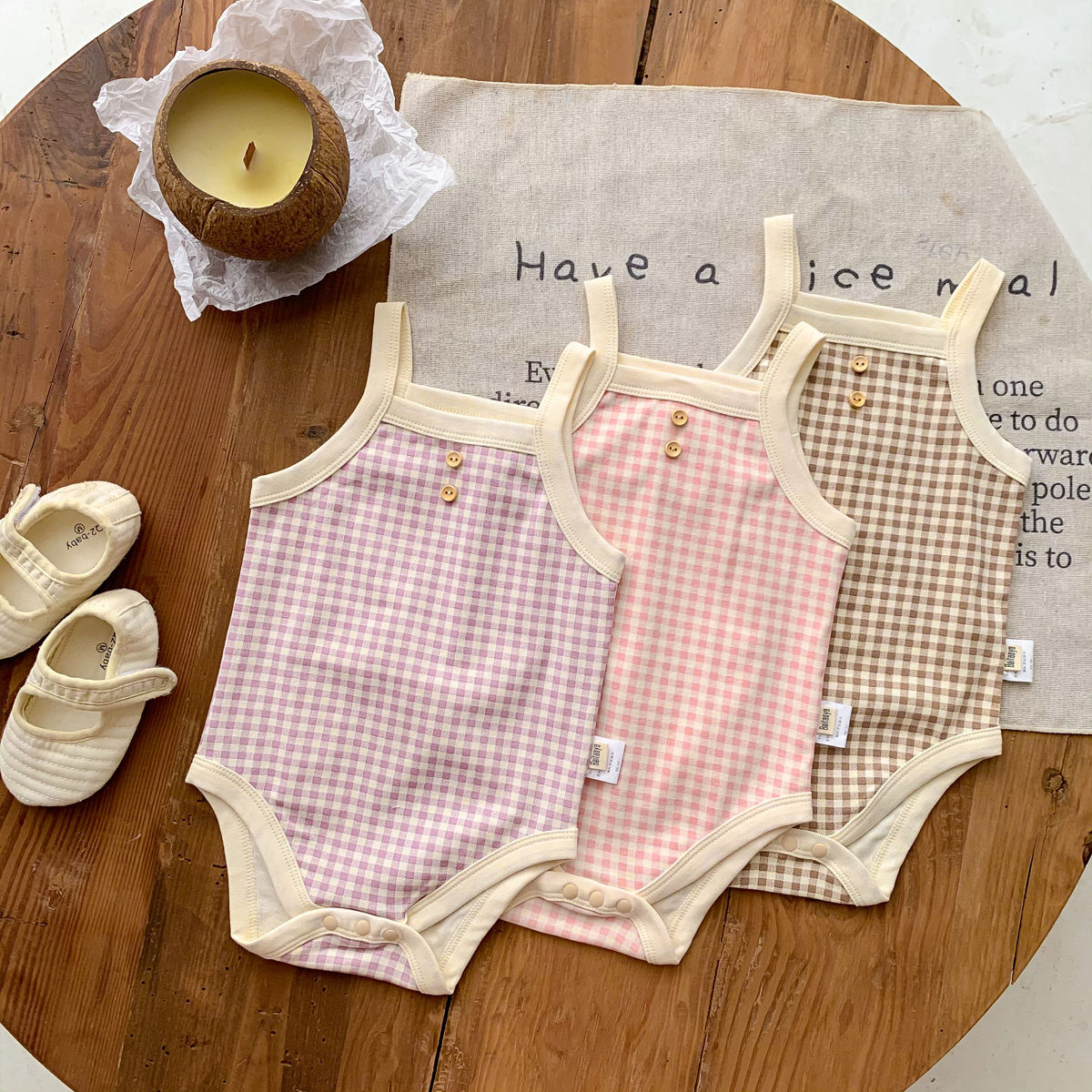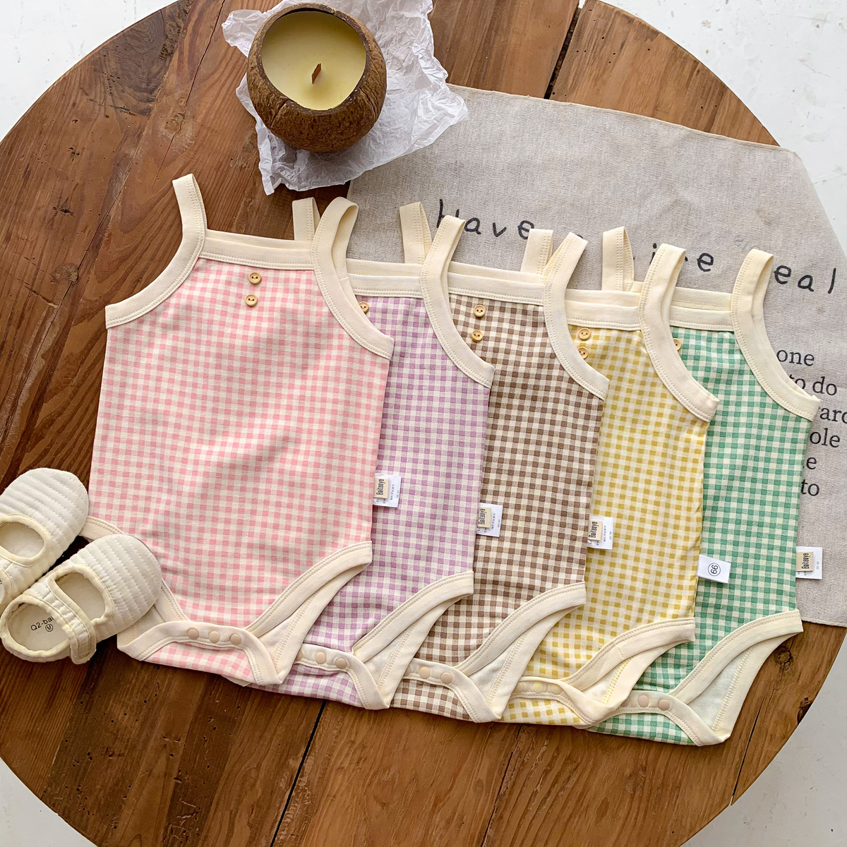 아기 소녀의 여름 캐미솔 가방 유아 및 어린이를위한 민소매 부드러운 격자 무늬 하이야에 뚱뚱한 옷스토어 가기