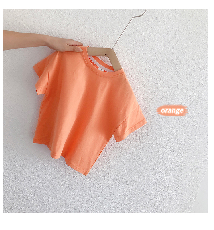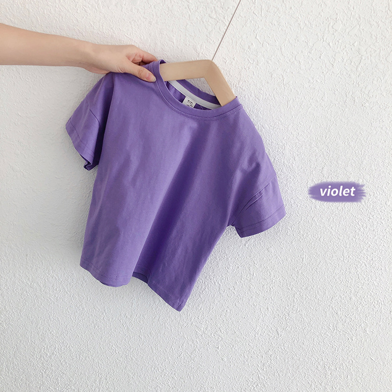 2023 여름 새로운 어린이 캔디 컬러 반팔면 느슨한 반팔 중소 소녀 티셔츠 기본 의류스토어 가기