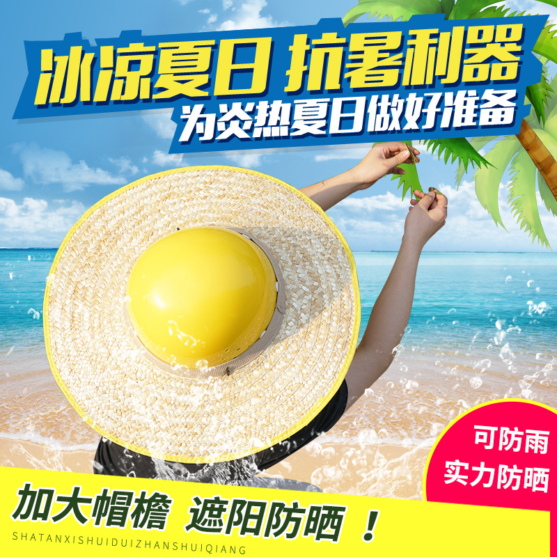 안전 헬멧 모자 림 대형 사이트 차양 모자 대형 림 밀 밀짚 통기성 대형 챙 지붕 밀짚 모자스토어 가기