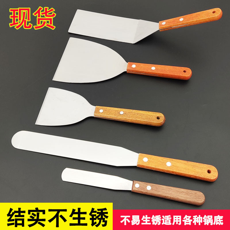 不锈钢木柄斜口铲披萨铲防烫蛋糕三角铲耐高温煎饼果子烹饪铲批发