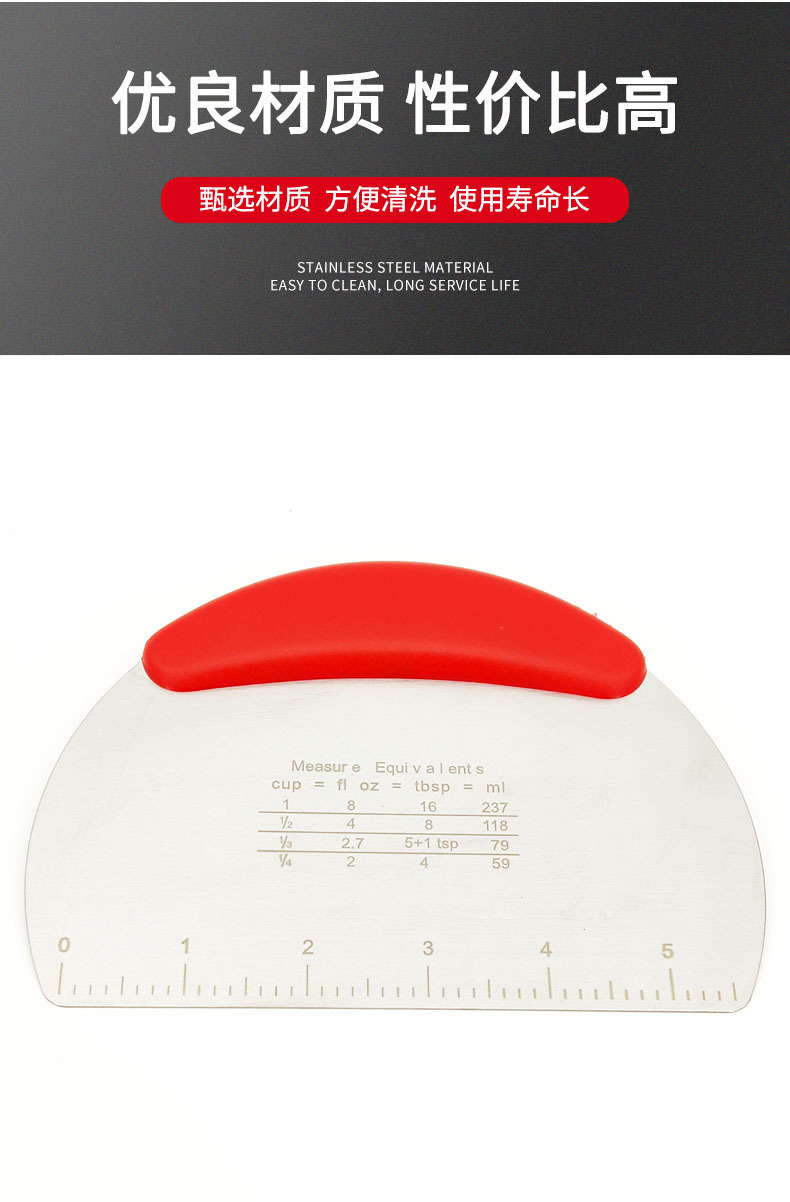 直销家用430带刻度不锈钢切面刀刮板奶油刮板肠粉刮板刮刀面粉刮