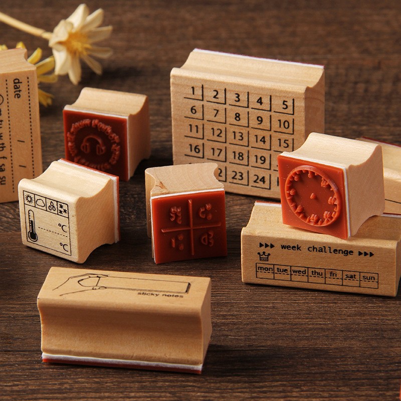 절묘한 나무 인감 귀여운 문학과 예술 작은 신선한 학생 사용 인쇄 핸드북 장식 재료 동반자 세트 6 선택스토어 가기