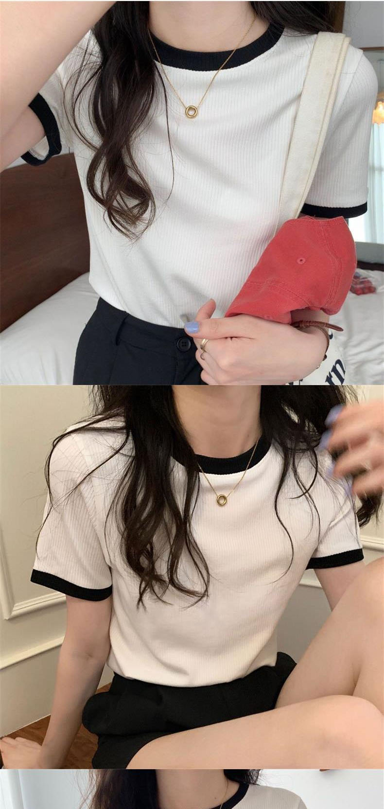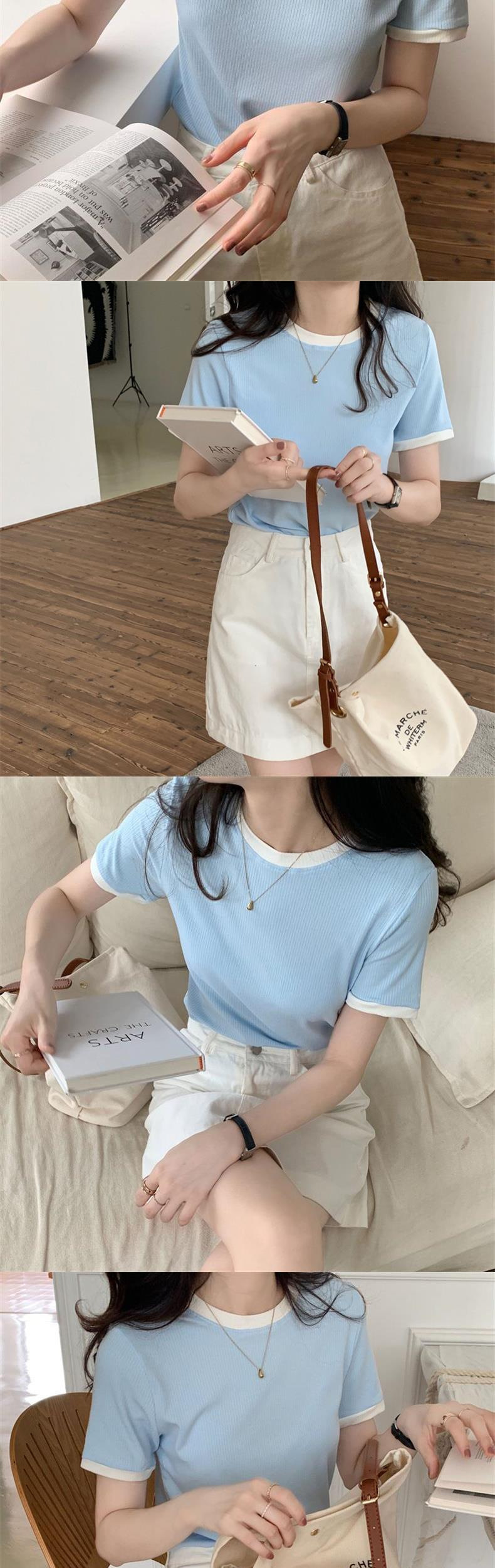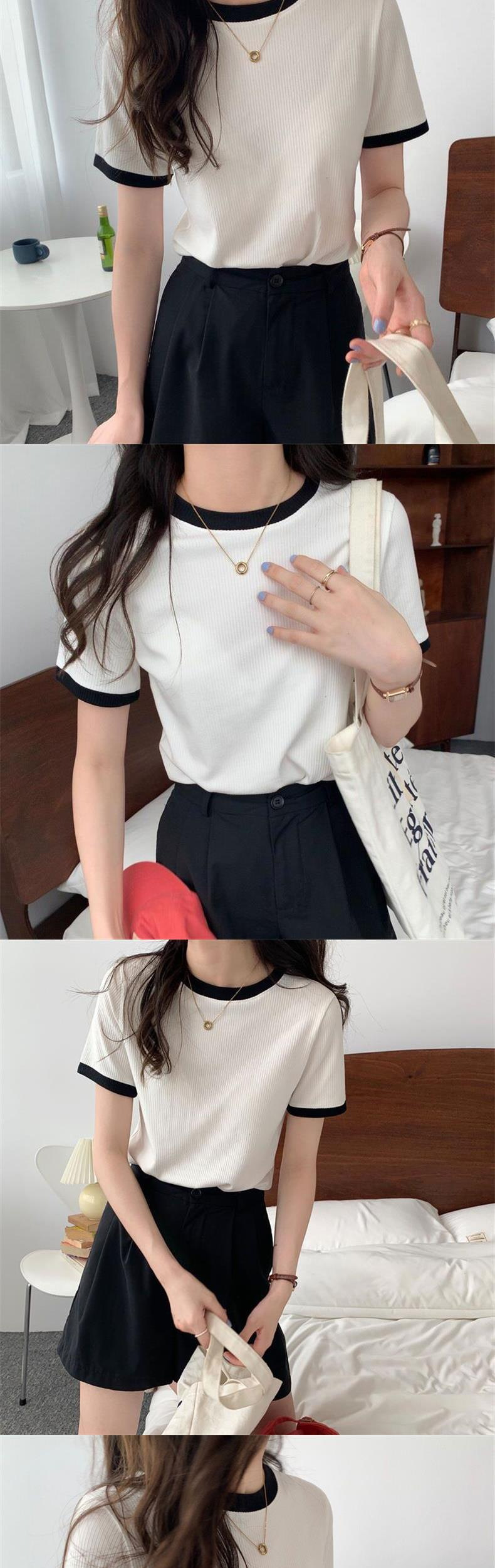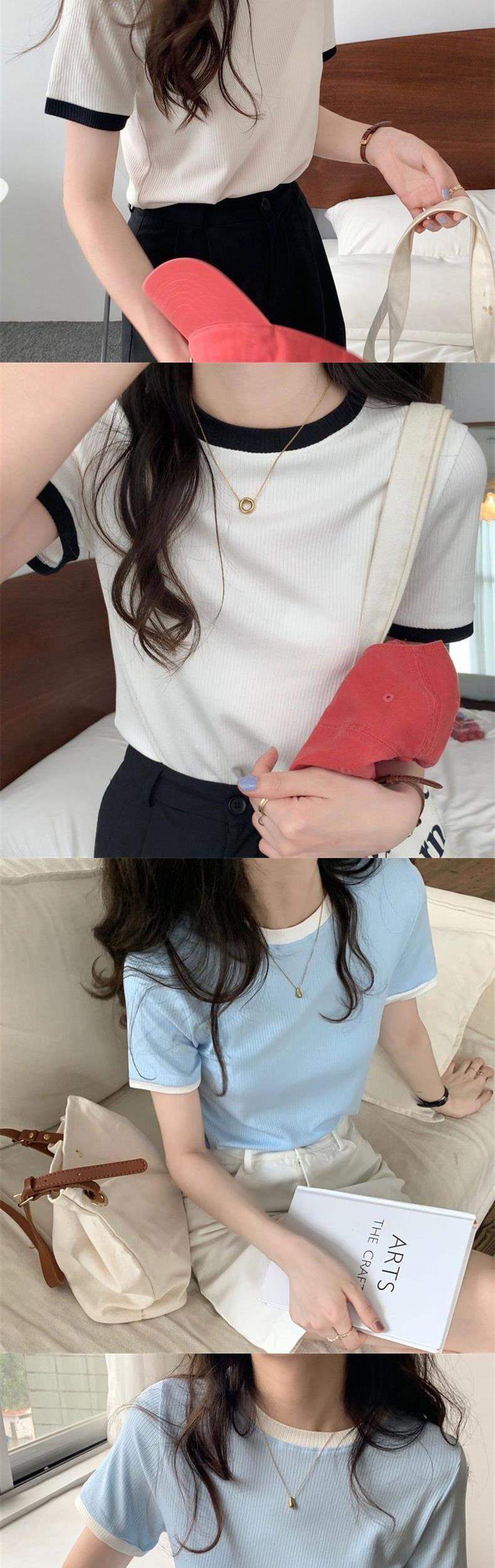 여성용 골지 반팔 티셔츠 2026 여름 신상 무지 이너웨어 신축성 있는 슬림핏 학생용 골지 티셔츠 탑 트렌디