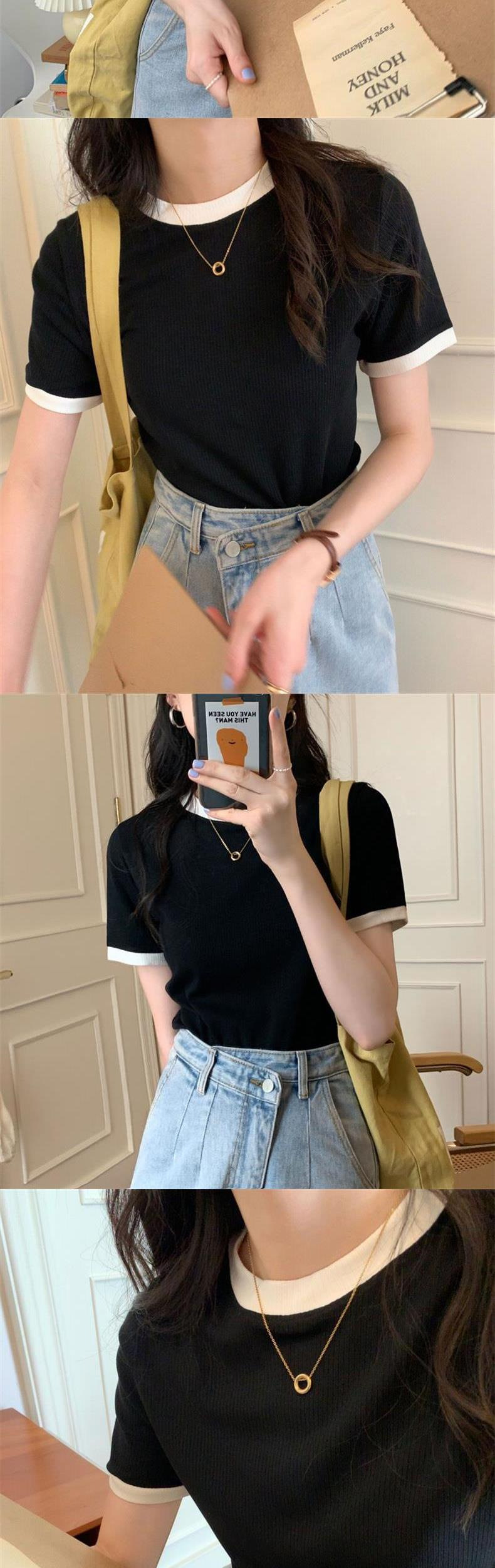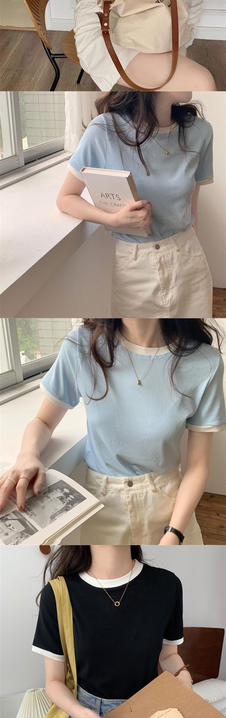 여성용 골지 반팔 티셔츠 2026 여름 신상 무지 이너웨어 신축성 있는 슬림핏 학생용 골지 티셔츠 탑 트렌디스토어 가기