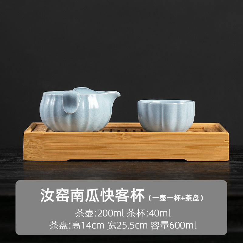 Ru Kiln Express 컵 원포트 1 인용 스페셜 쿵푸 핸드헬드 티포트 티컵 휴대용 여행 티 세트스토어 가기