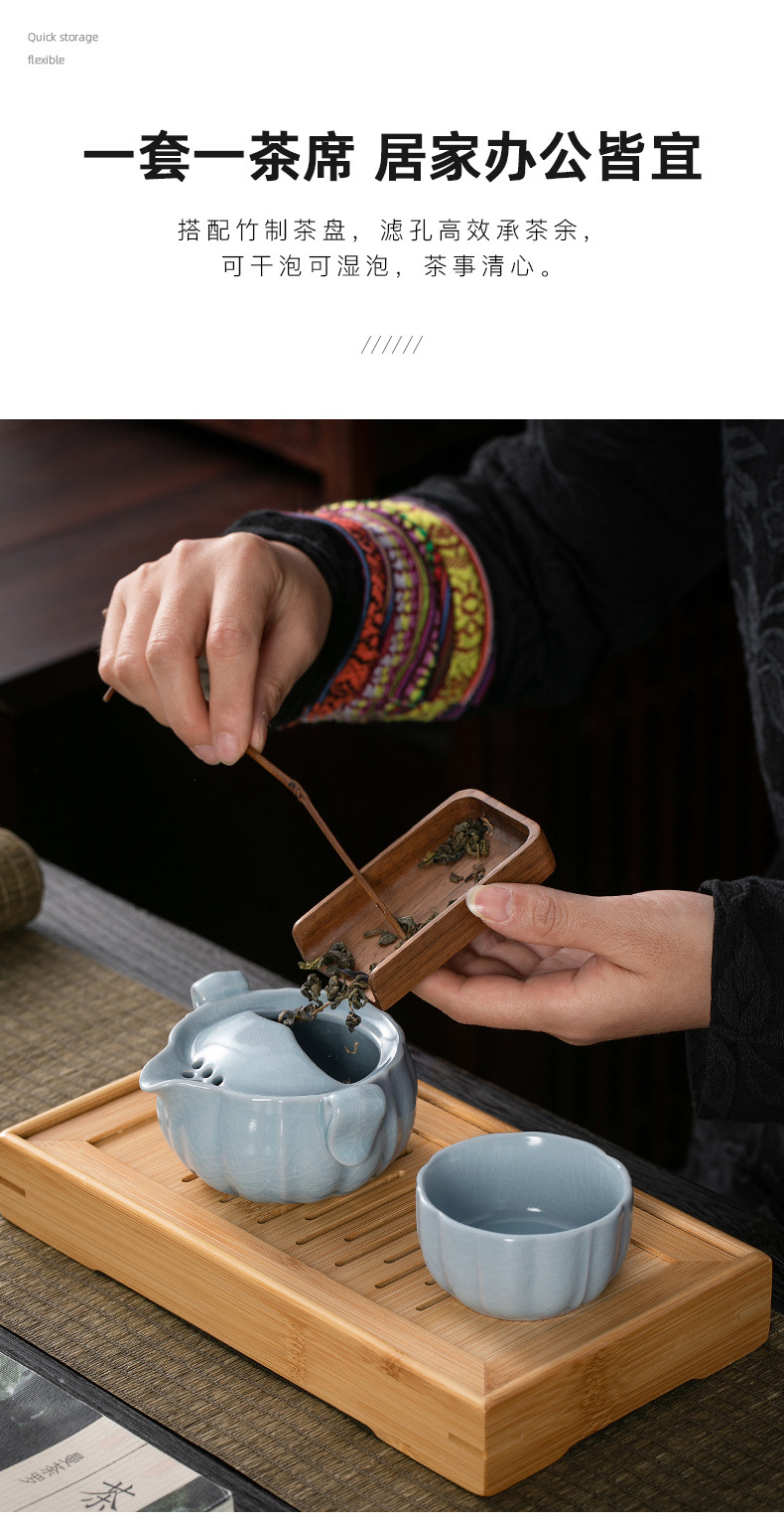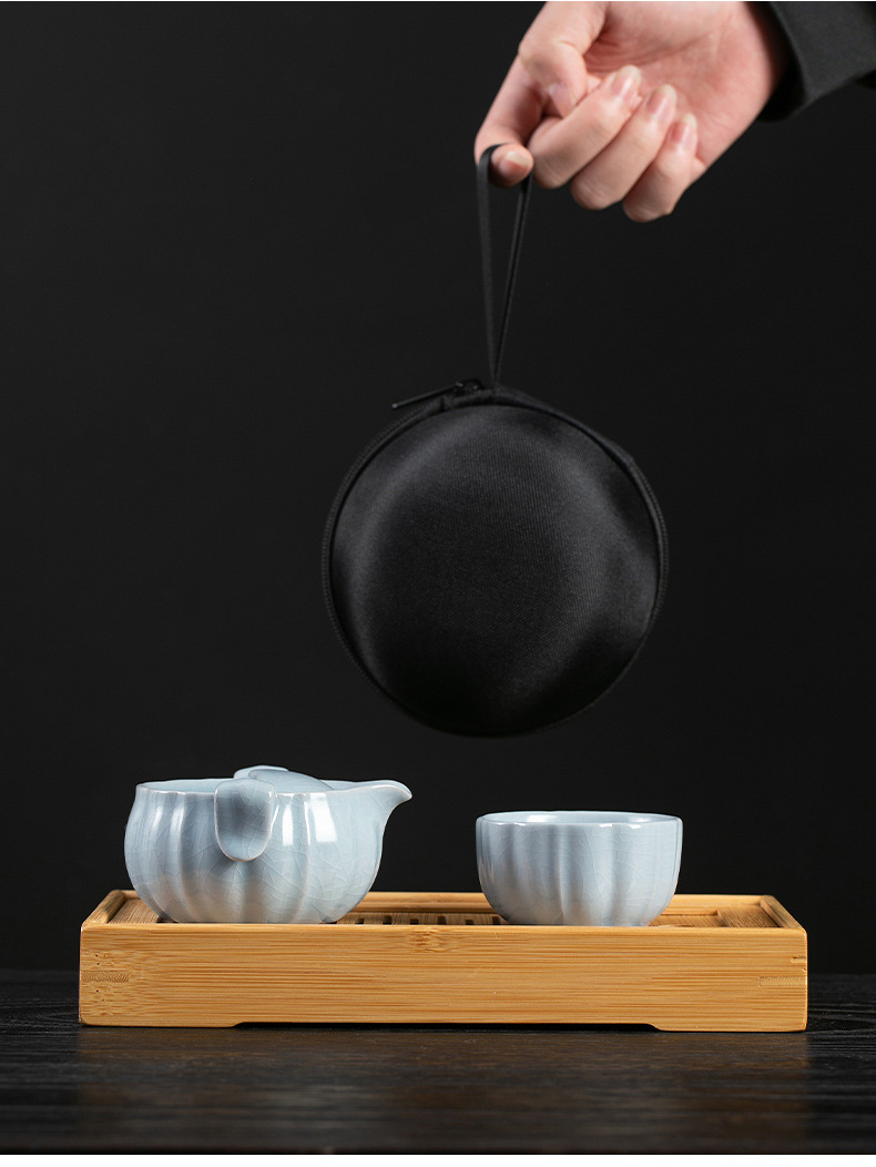 Ru Kiln Express 컵 원포트 1 인용 스페셜 쿵푸 핸드헬드 티포트 티컵 휴대용 여행 티 세트