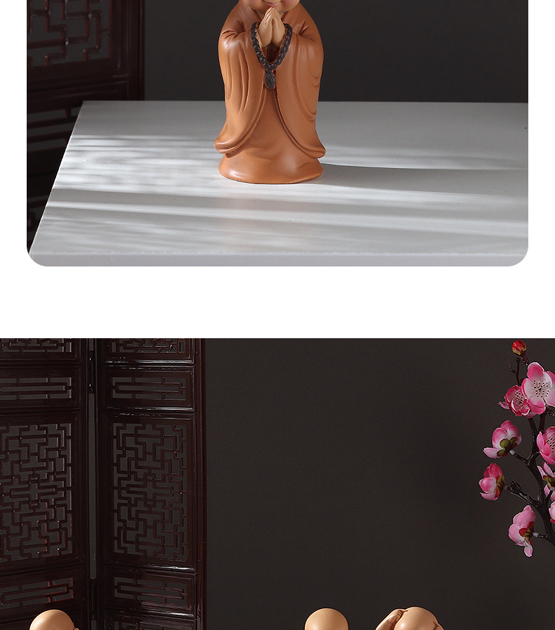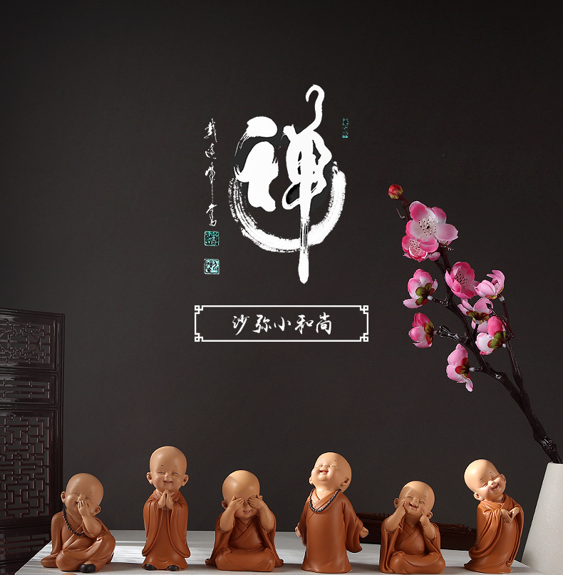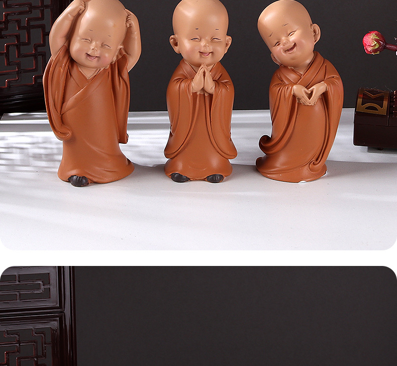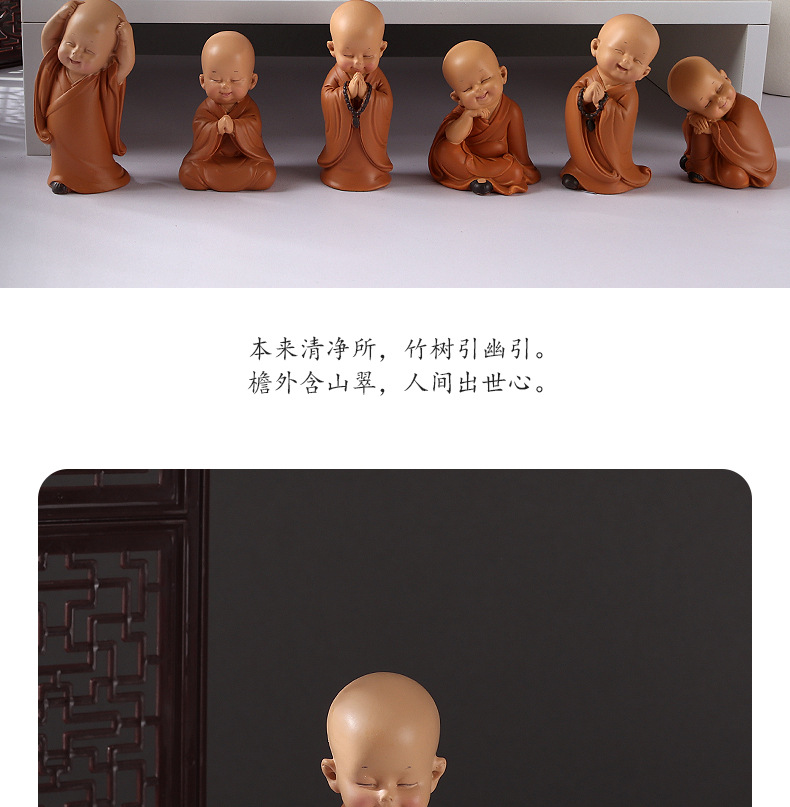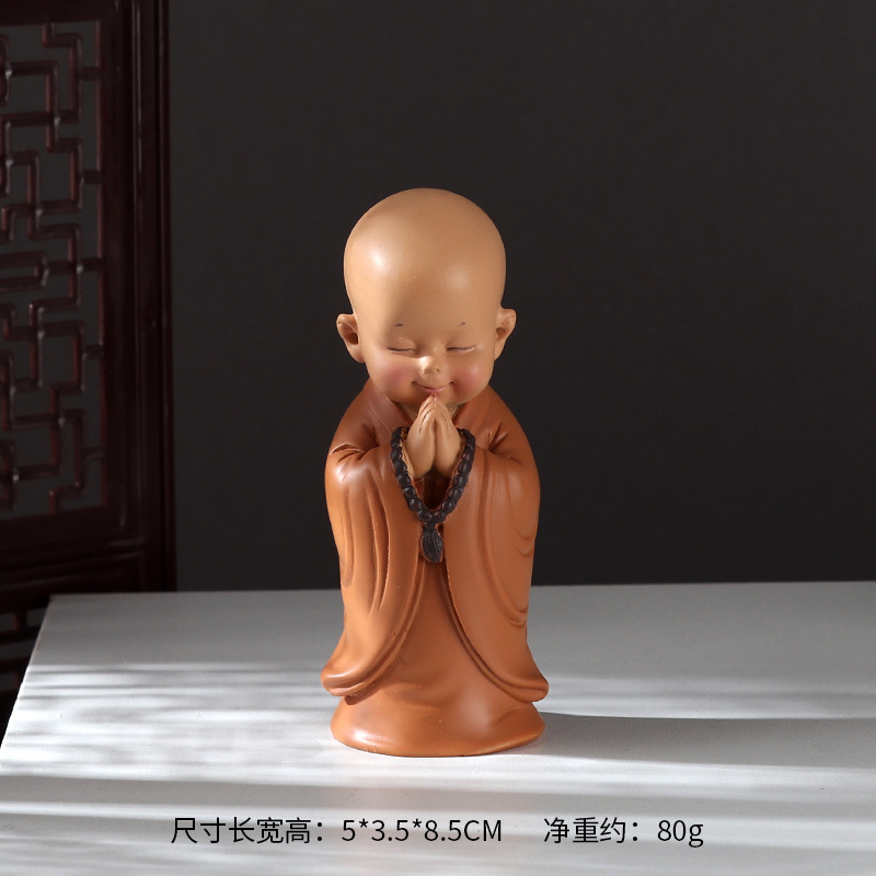 미니 귀여운 작은 승려 자동차 인테리어 창조적 인 홈 오피스 티 테이블 장식품 부처 스타일 복고풍 작은 선물스토어 가기