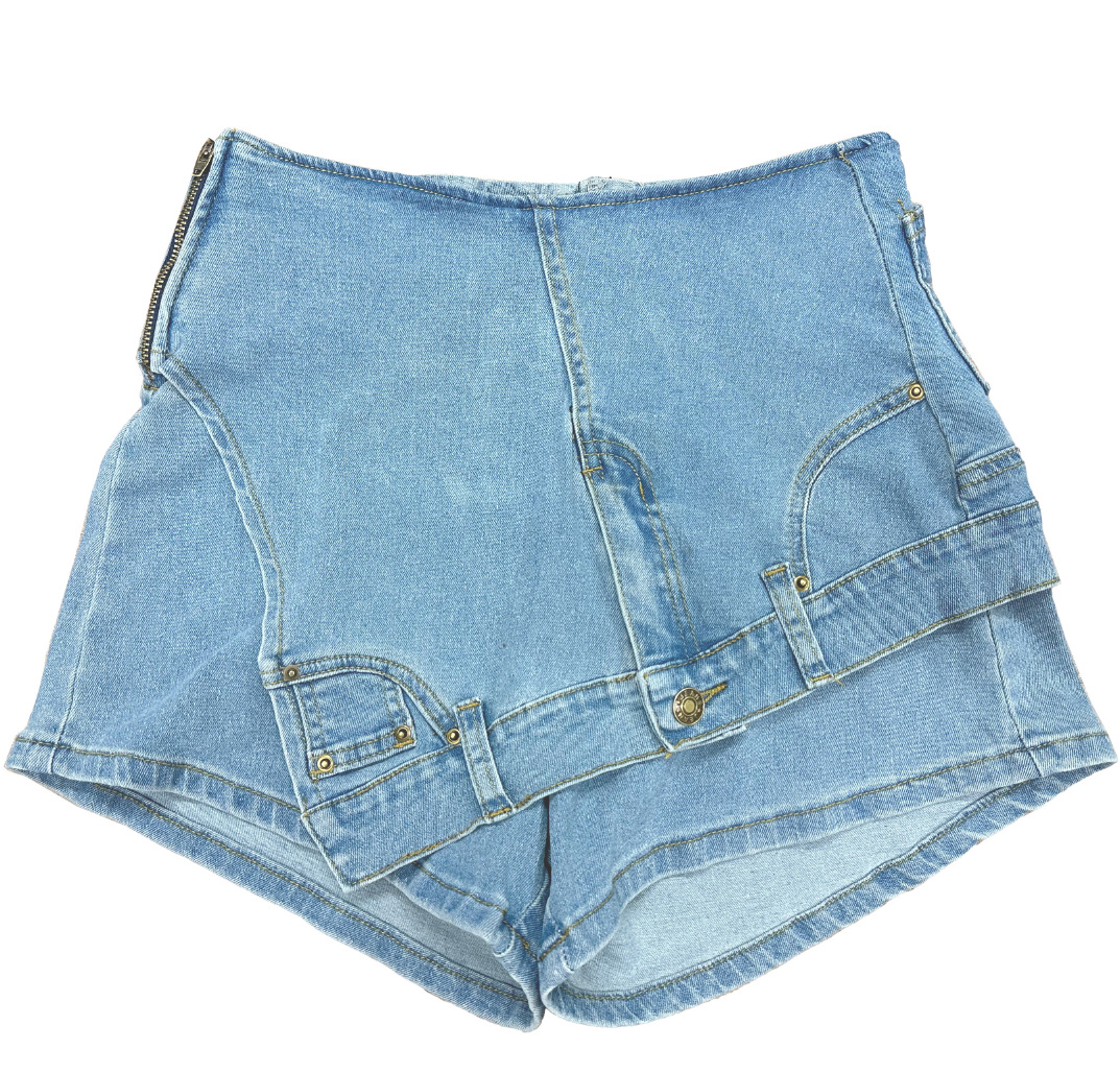 F207 유럽 및 미국 여성복 크로스보더 데님 팬츠 여성용 로우 웨이스트 스플라이스 슬림핏 신축성 있는 불규칙 트렌디 데님 반바지스토어 가기