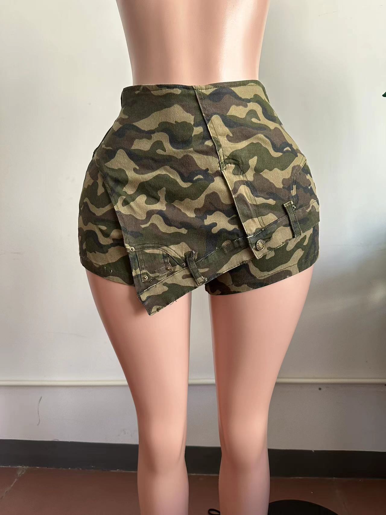 F207 유럽 및 미국 여성복 크로스보더 데님 팬츠 여성용 로우 웨이스트 스플라이스 슬림핏 신축성 있는 불규칙 트렌디 데님 반바지