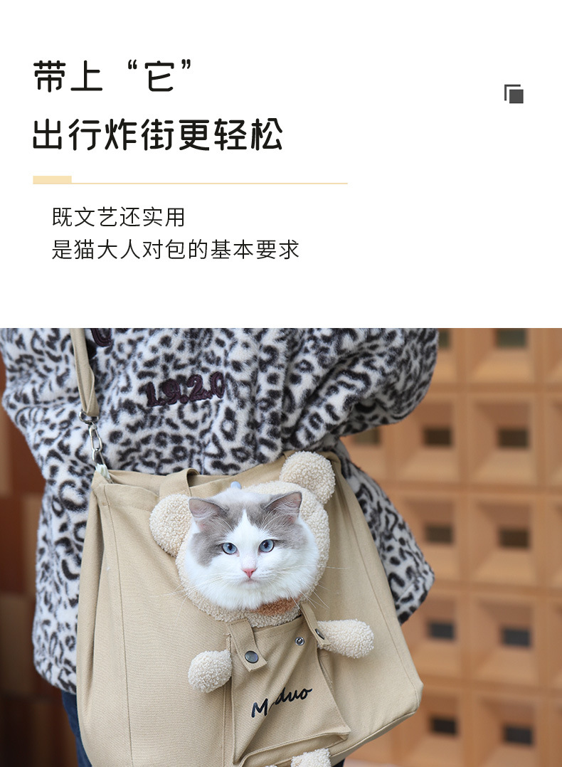 귀여운 곰 캔버스 나가는 고양이 가방 나가는 고양이 휴대용 작은 개 애완 동물 배낭 어깨 가방 도매스토어 가기