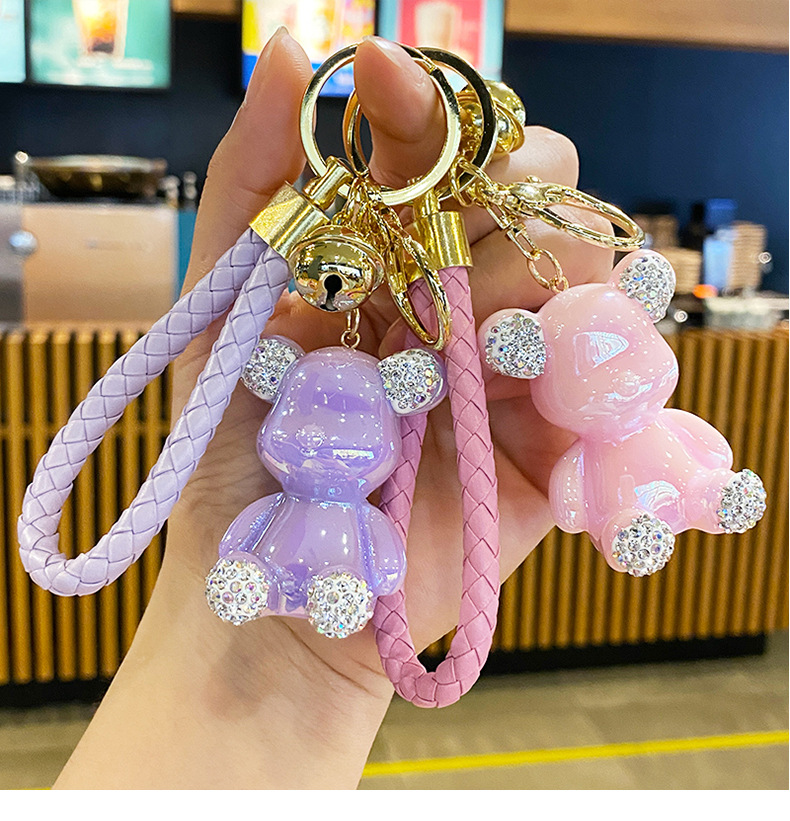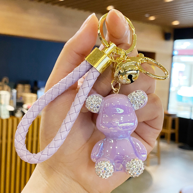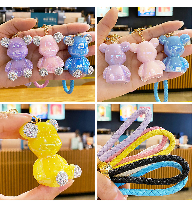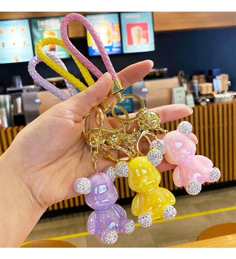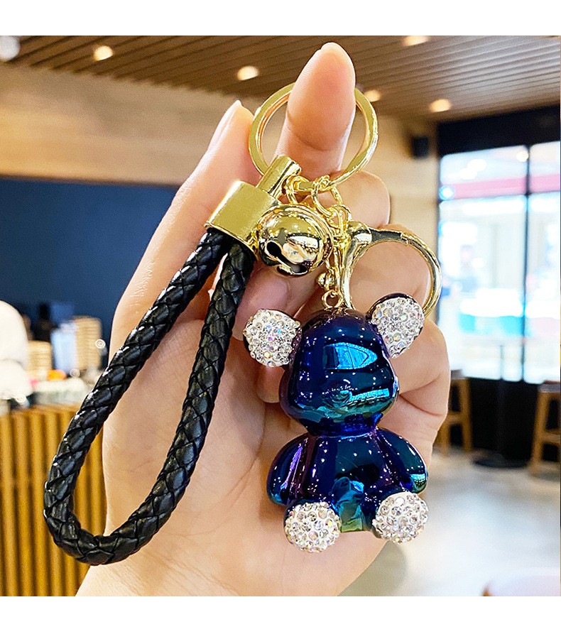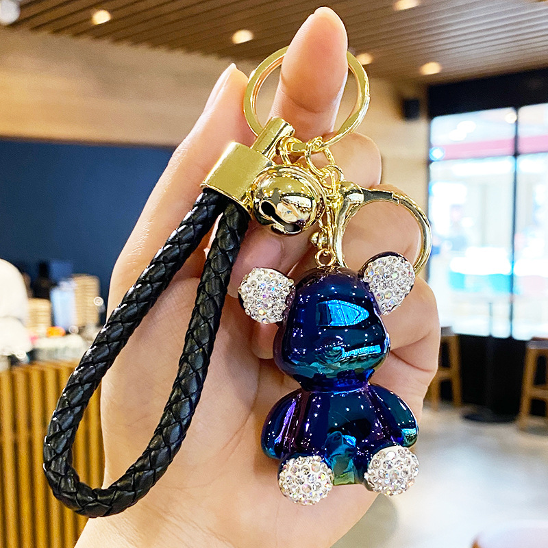고급 전기 도금 다이아몬드 박힌 곰 열쇠 고리 절묘한 귀여운 소녀 가방 펜던트 자동차 열쇠 고리 만화 인형스토어 가기