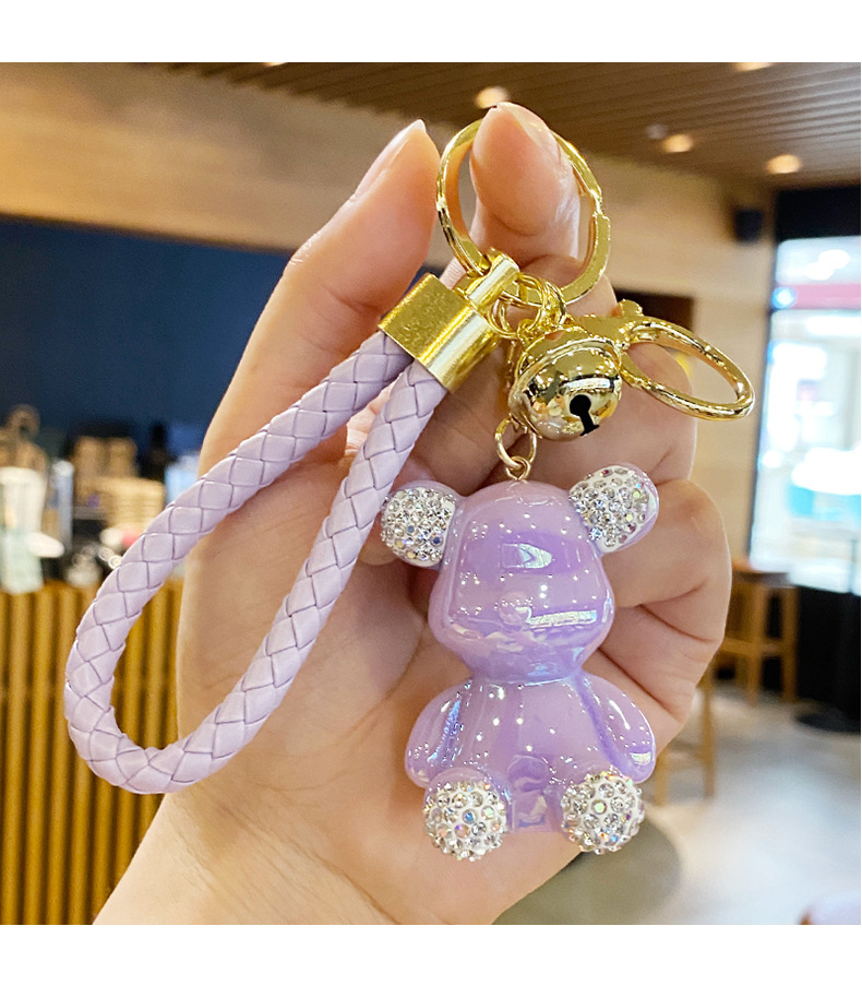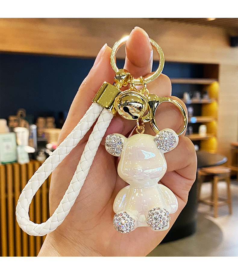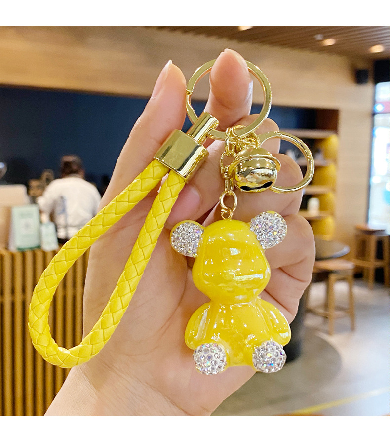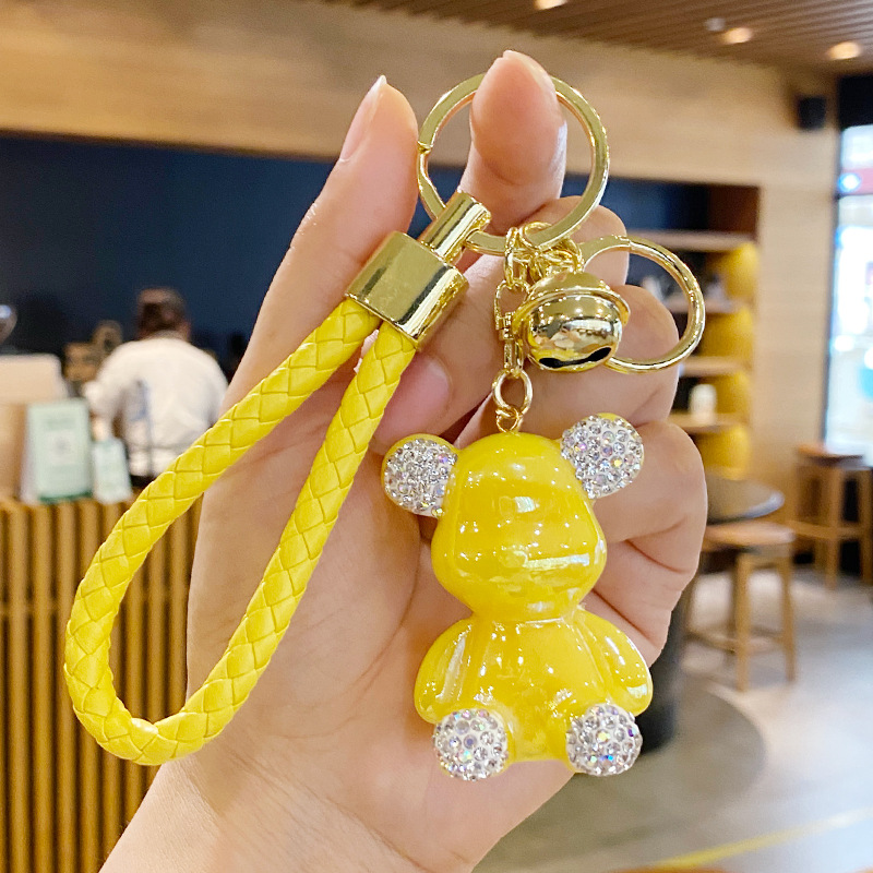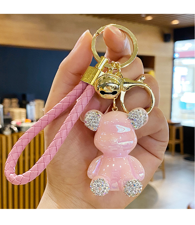 고급 전기 도금 다이아몬드 박힌 곰 열쇠 고리 절묘한 귀여운 소녀 가방 펜던트 자동차 열쇠 고리 만화 인형스토어 가기