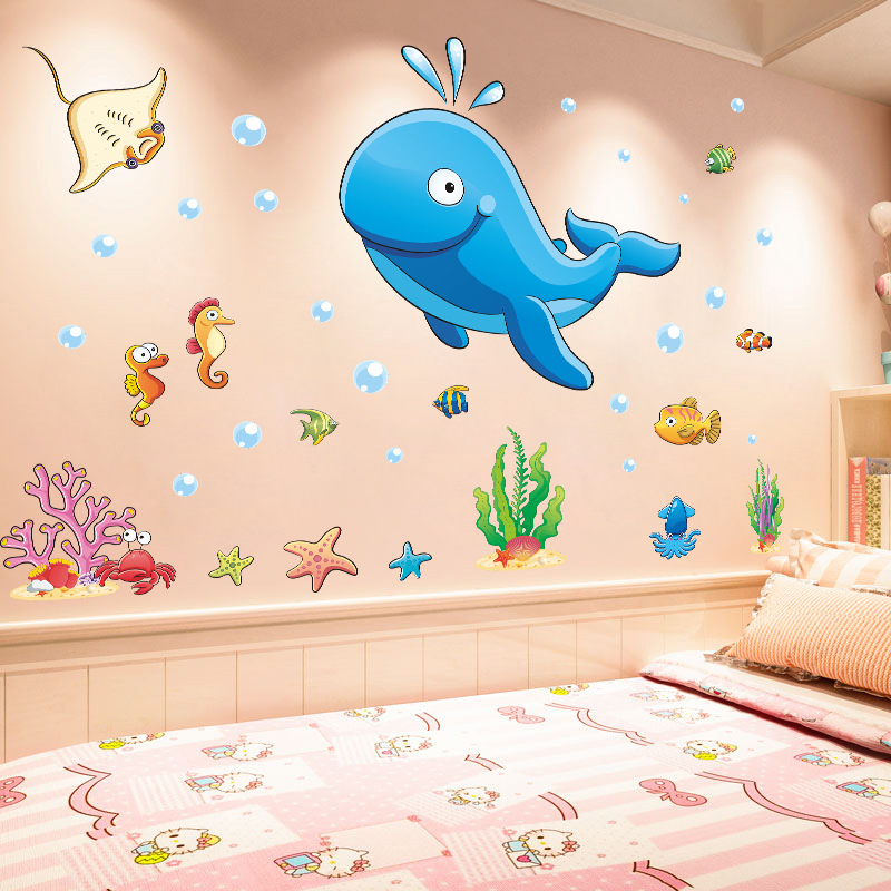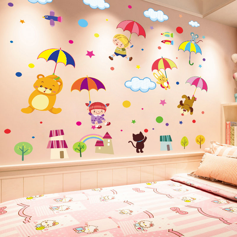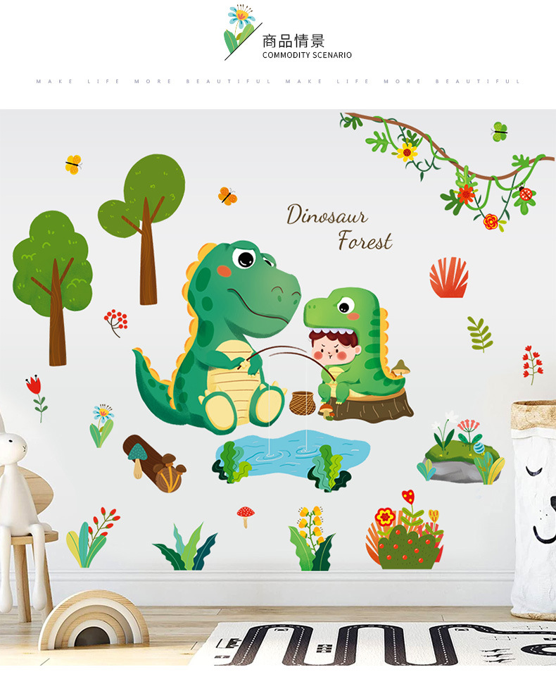 만화 공룡 벽 스티커 아기 어린이 방 레이아웃 침실 침대 옆 벽지 유치원 벽 장식 스티커스토어 가기