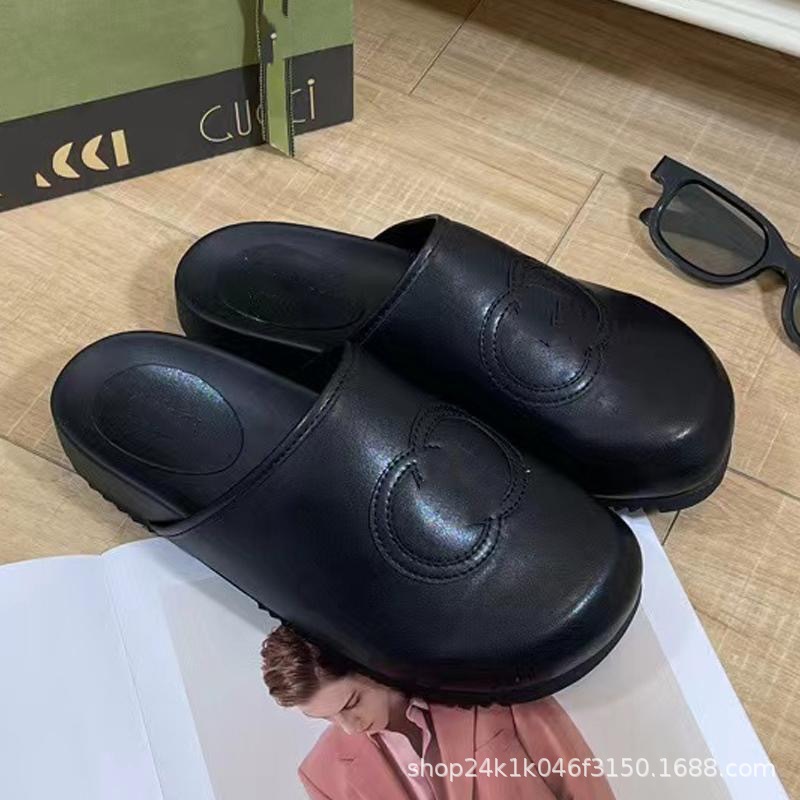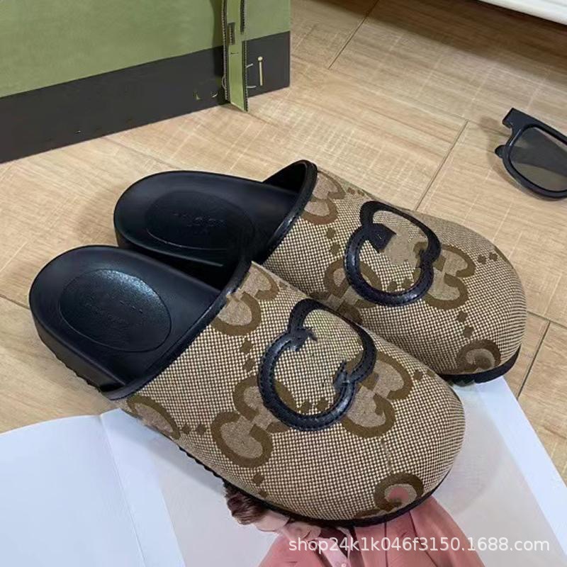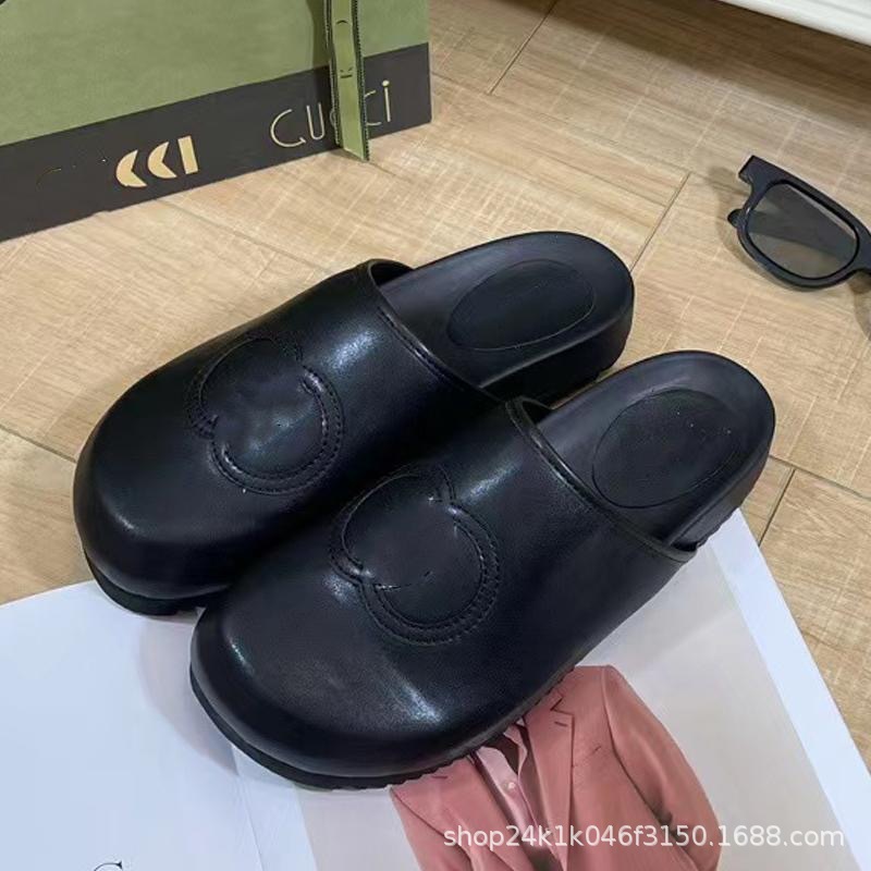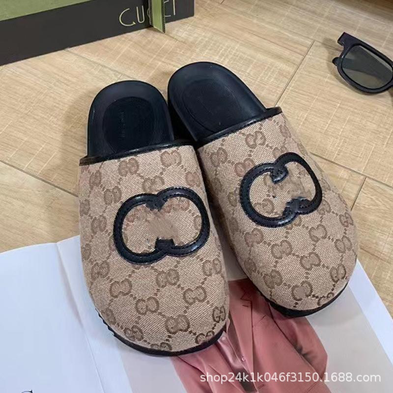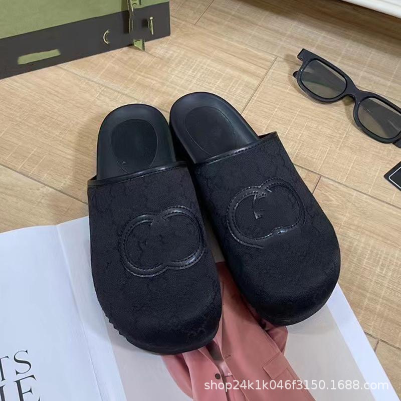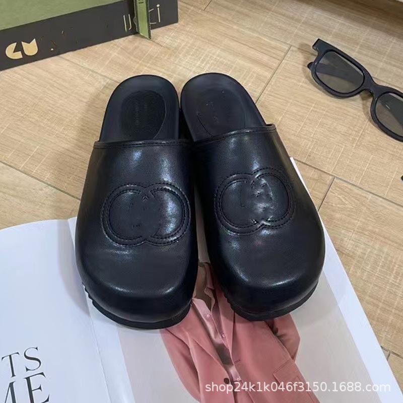하이 버전 G 홈 Baotou 하프 지원 여성의 2024 년 이른 봄 새로운 패션 자수 외부 착용 편평한 말 버클 게으른 신발